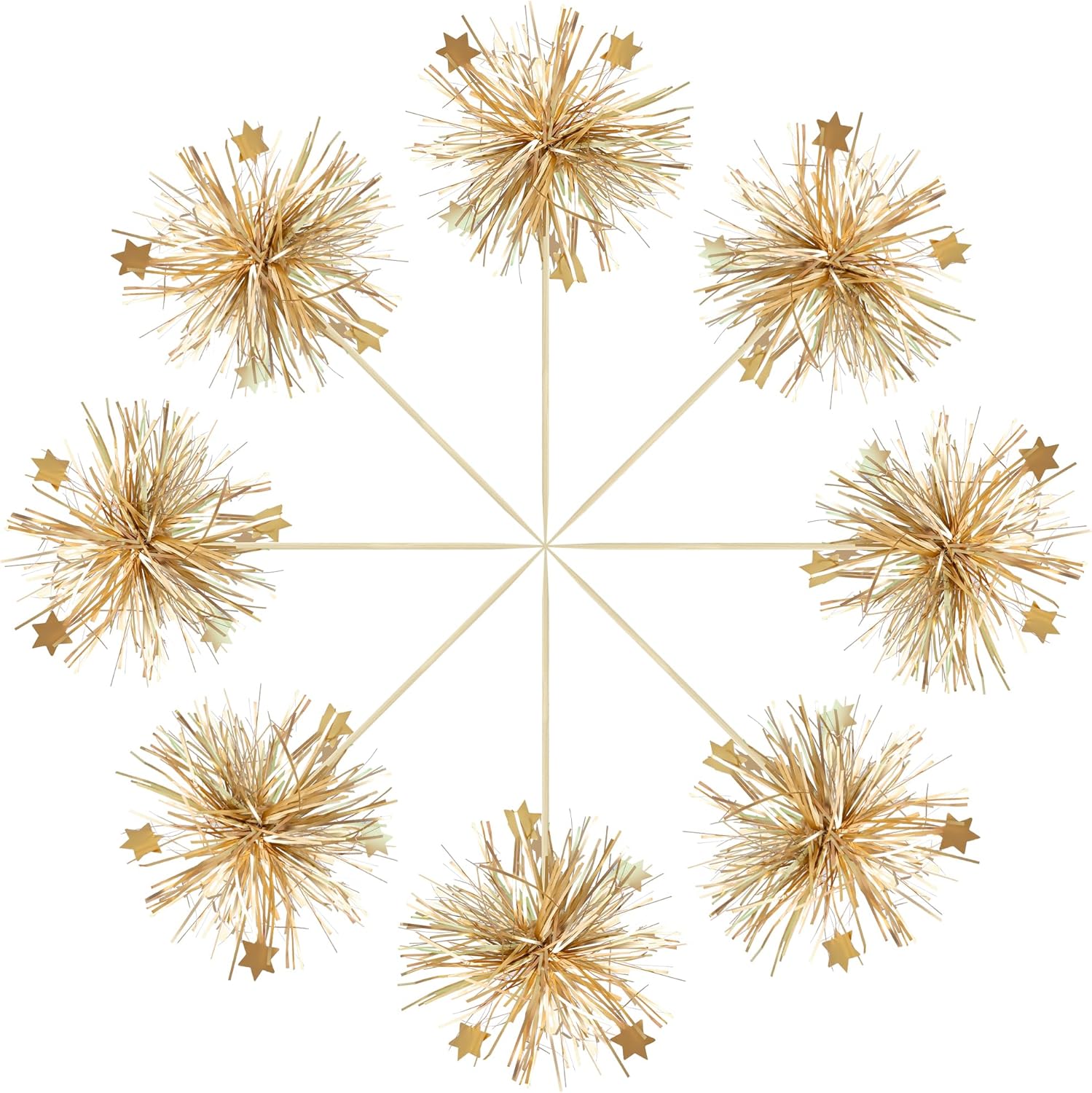 Gyufise 30Pcs Foil Firework Cupcake Toppers Happy Birthday Cake Toppers Sparkle Tinsel Flower Drink Stirrers Cocktail Food Fruit Toothpicks for Valentine's Day Party Supplies Gold