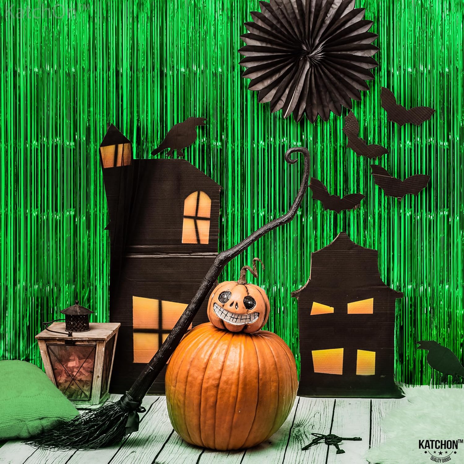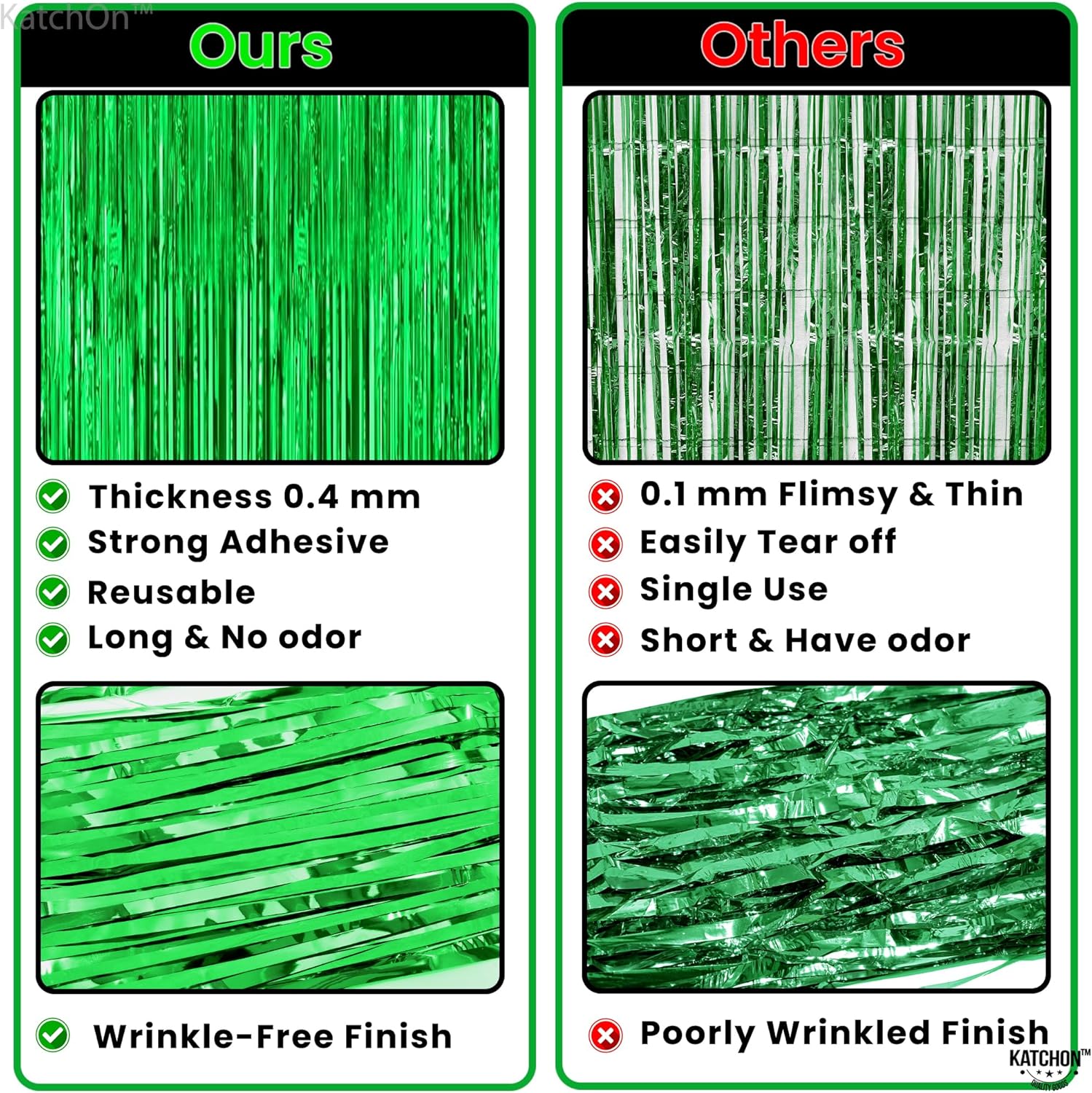 KatchOn, Green Streamers - Pack of 2 | Fringe Backdrop Curtain for Dinosaur Birthday | Halloween Decorations | Party Supplies for Green Birthday Decorations