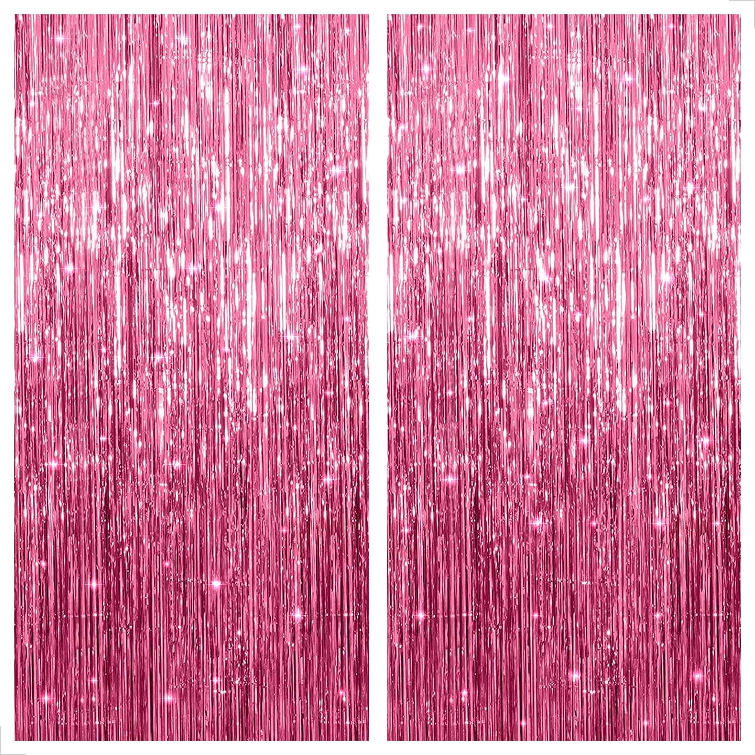 • SIZE 3.2x6.5 FEET | PACK OF 2 PINK DOOR STREAMERS : Thinking about stunning party pink backdrop? Make elegant pink princess backdrop for your daughter's birthday with foil pink streamer curtain. Pink back drop size of 3.2x6.5ft comes in pack of 2 pink streamers. This pink party backdrop, pink foil fringe curtain will create beautiful pink tinsel backdrop for pink birthday decorations, flamingo party decorations, pink party decorations, breast cancer awareness decorations.
