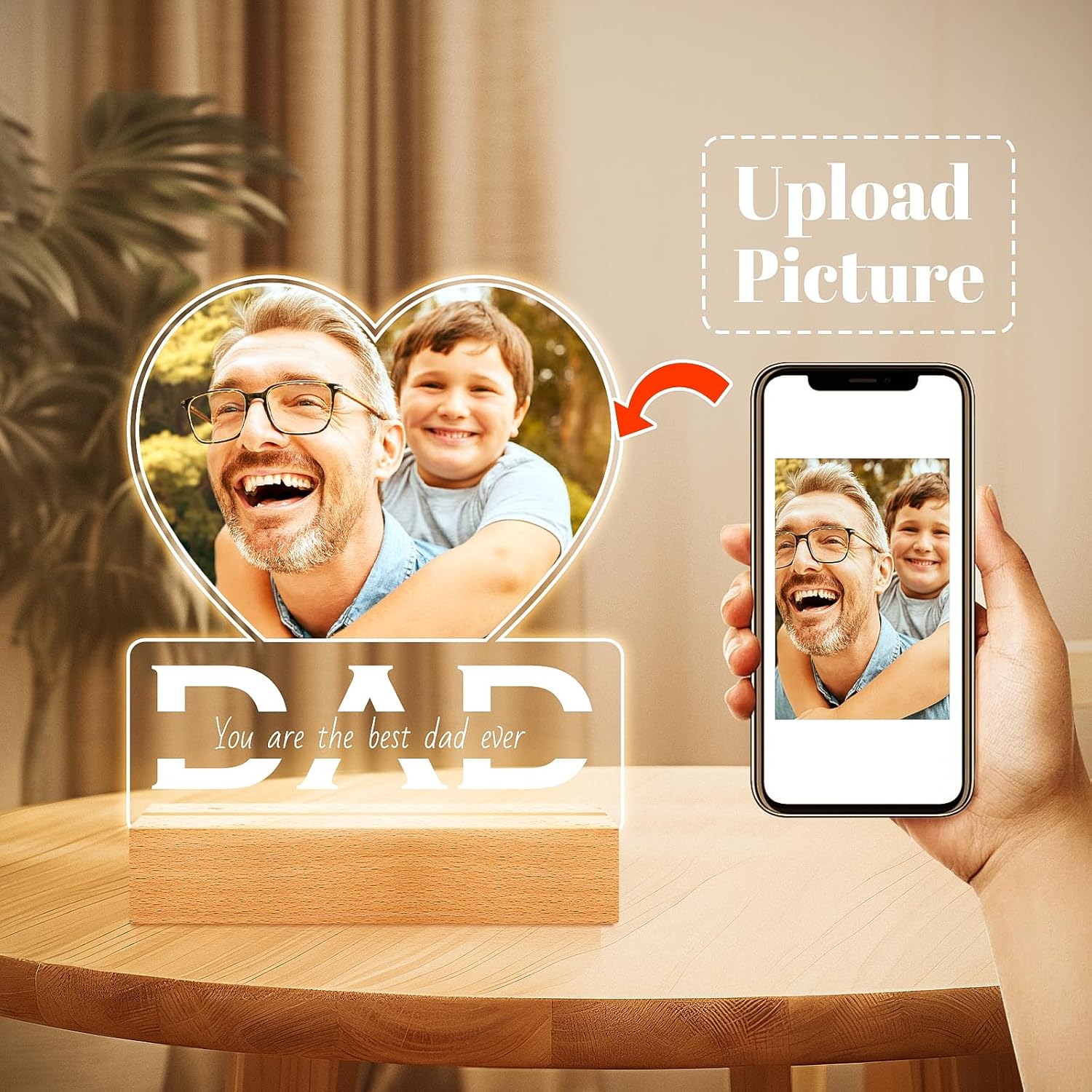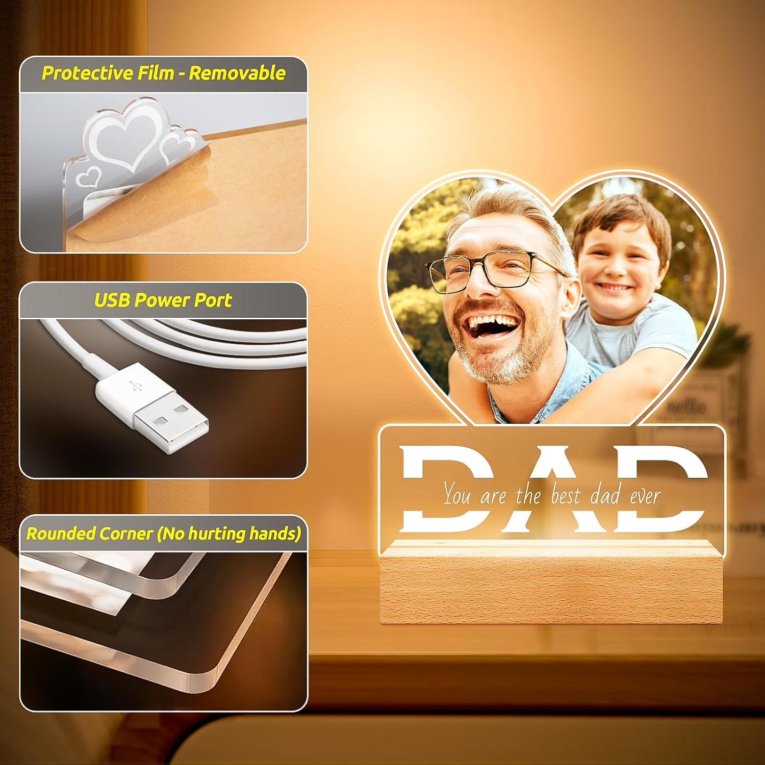 Personalized Photo Gifts for Dad from Daughter and Son, Personalized Picture Frame with Night Light, Custom Acrylic Plaque Photo Frame, Customized Dad Birthday Gifts for Baby Kids Family