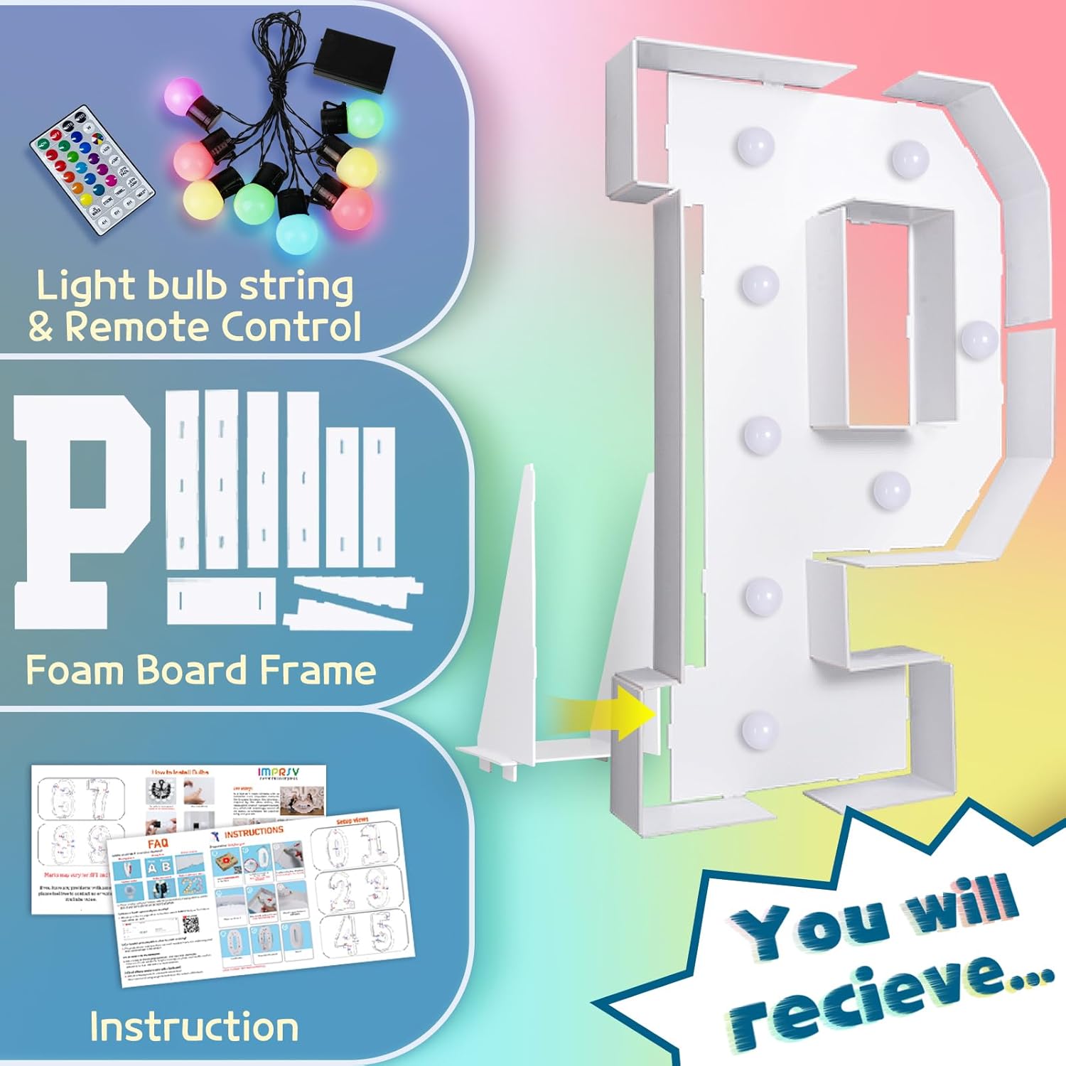 imprsv 3FT Colorful Marquee Light Up Letters P, 18 Color Light Up Alphabet Sign with Remote, Baby & Large Letters for Baby Shower, Birthday, Engagement, Wedding Party Decor