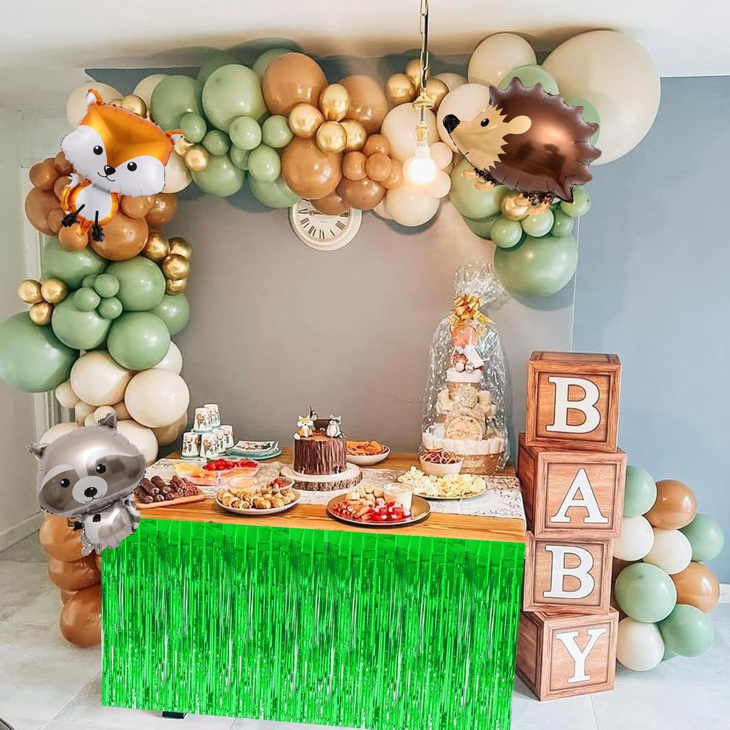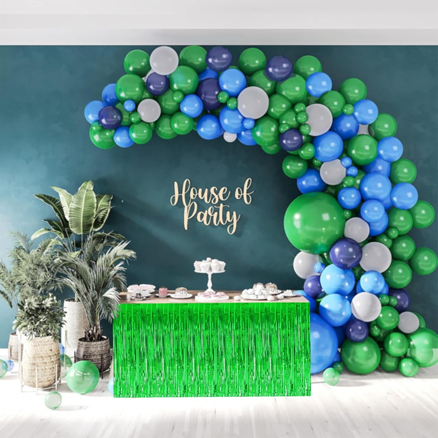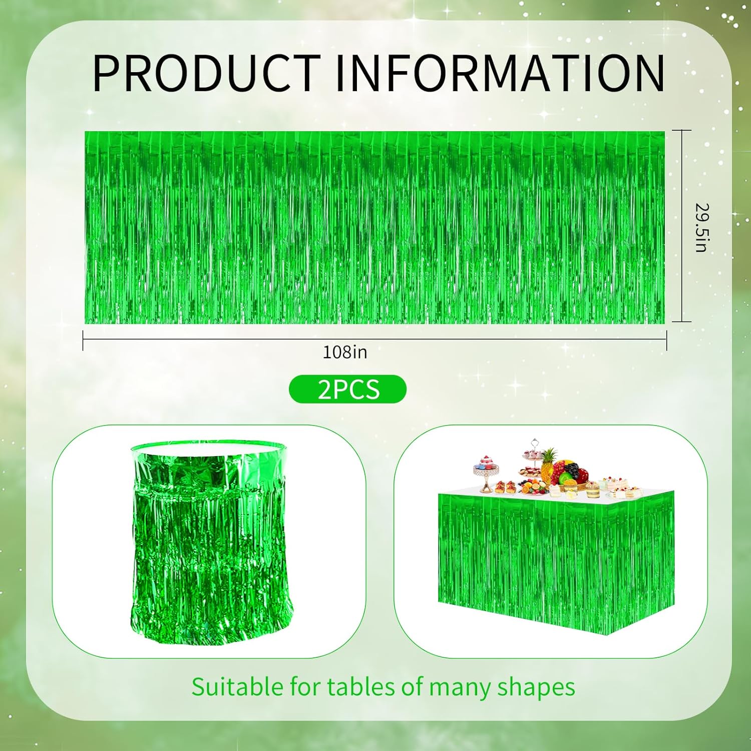 BEISHIDA 2 Pack Metallic Tinsel Foil Fringe Table Skirts for Rectangle & Round Tables Green Kids' Birthday, Holiday Party, Cartoon Party Decorations - Perfect for Birthday Baby Shower Festive Events