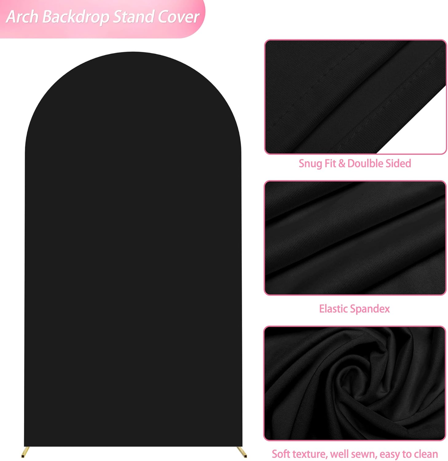 • 【Arch Stand and Covers Package】Package contains 1pcs wedding arch stand and 1pcs arch cover. Size: 7.2x4ft(HxW). Material: metal arch backdrop stand and spandex arch cover. Color: Black arch cover and gold wedding arch stand. Decorate your party with our gold arch stand and arch covers to create an epic decor for your celebration.