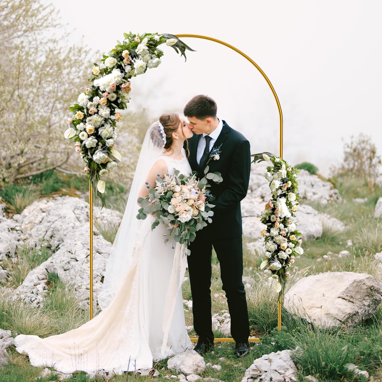 • 【Applicable to Multiple Scenarios】The Gold Balloon Arch Frame can be decorated with arch backdrop covers, balloons, flowers, plants, lights, etc. It is perfect for various events, like weddings, baby showers, bridal showers, birthday parties, garden parties, photography sessions, photo booths, commercial events, themed parties, engagement banquets, Valentine's Day, Thanksgiving, Christmas, and other special occasions. Accompanying every important moment in your life.
