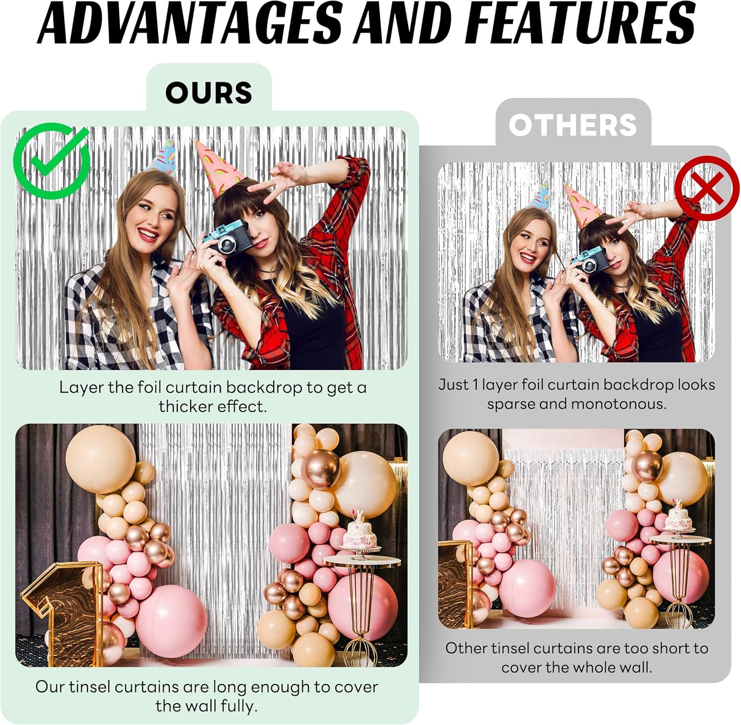 • Material:the foil curtain backdrop is made of tinsel with shiny surface