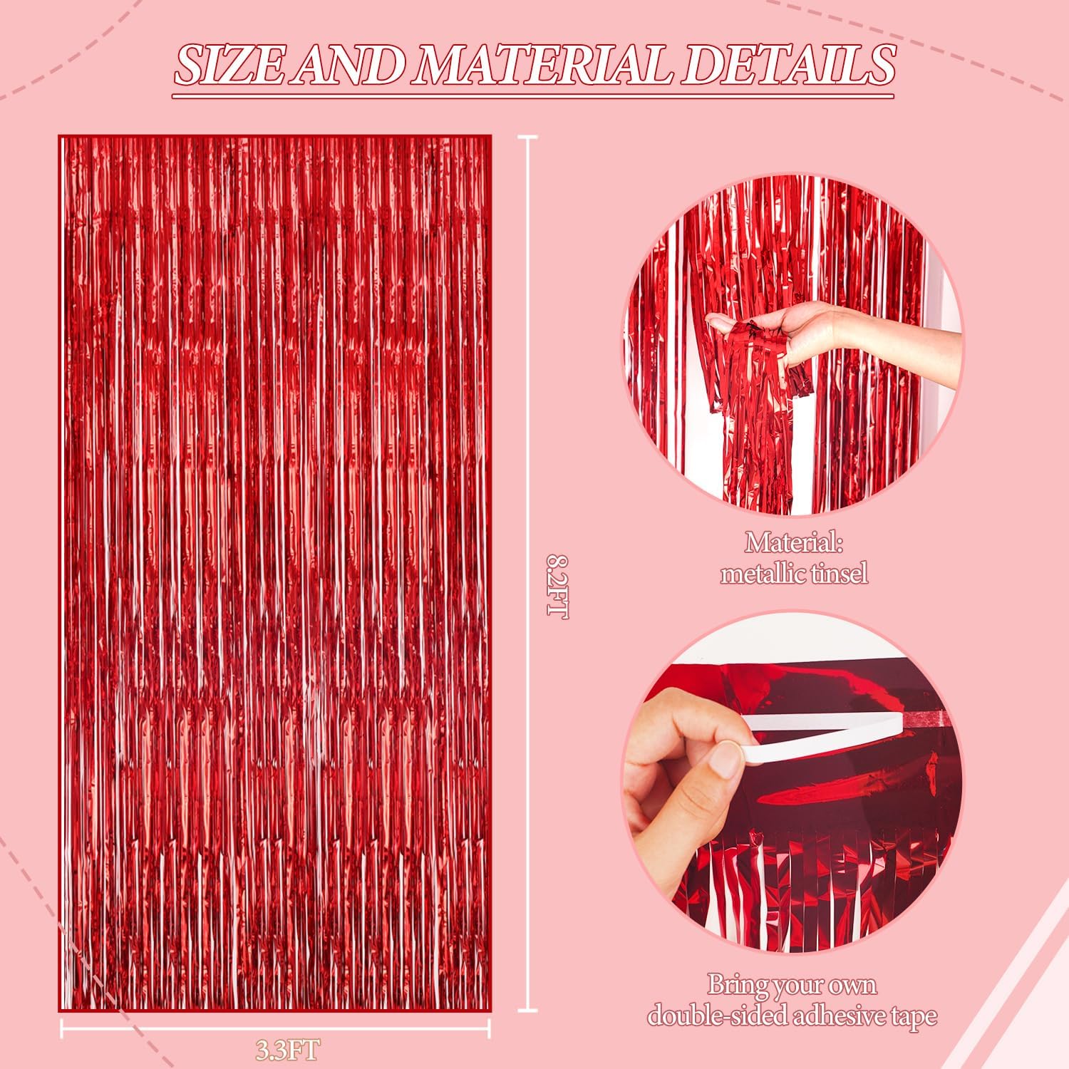 3 Pack Foil Fringe Backdrop - Red Shiny Tinsel Curtains for Party Decoration/Photo Booth Props - 3.3x8.2 FT Metallic Foil Backdrop for Birthday, Wedding, Graduation, Christmas.