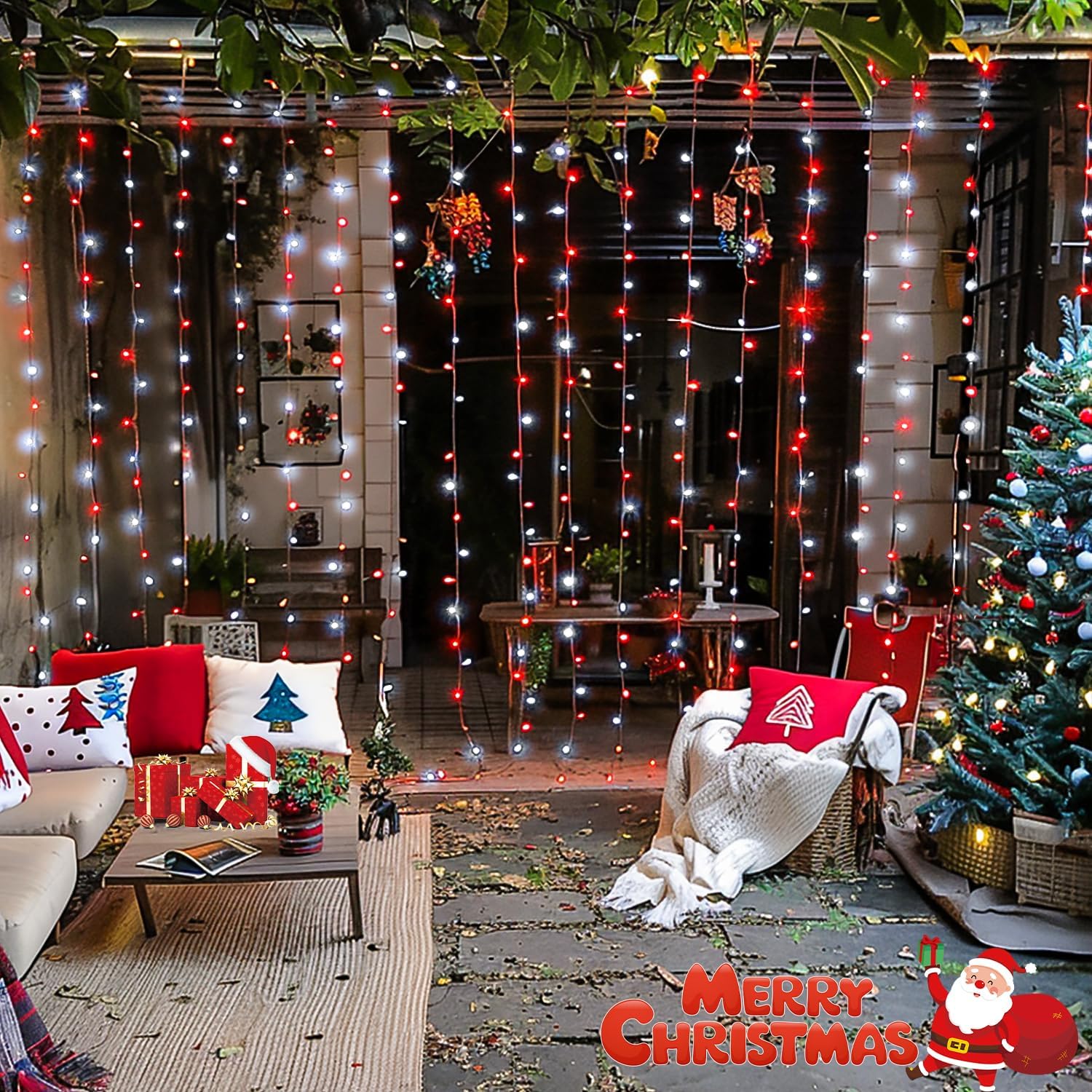 • 9.8X9.8FT RED AND WHITE CHRISTMAS CURTAIN LIGHTS - Add wonderful decorations to your Christmas event with the 300LED red and white curtain lights (UNCONNECTABLE). It comes with 10 light strands, each containing 30 pcs of LED lights. The width and height of 9.84 feet make it sufficient to cover most windows and walls for a larger light display. It gives off a glow and adds a great festival ambiance to your Christmas decorations