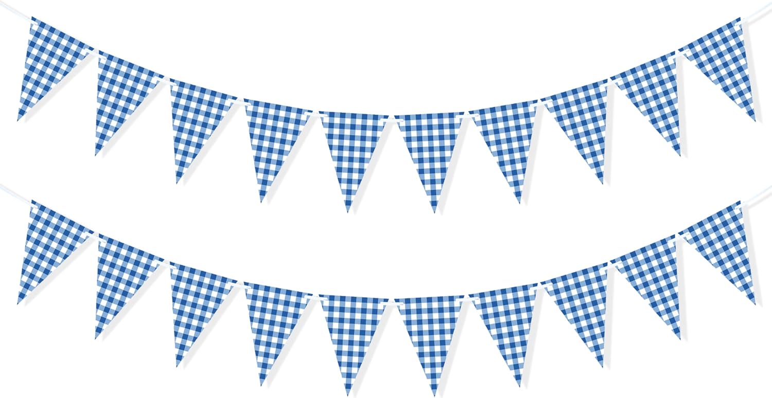 • Package includes 2pcs checkered pennant banner in classic blue and white gingham pattern, matching well with the picnic theme, pre-strung and distance adjustable that you can space them easily to the perfect site you like.