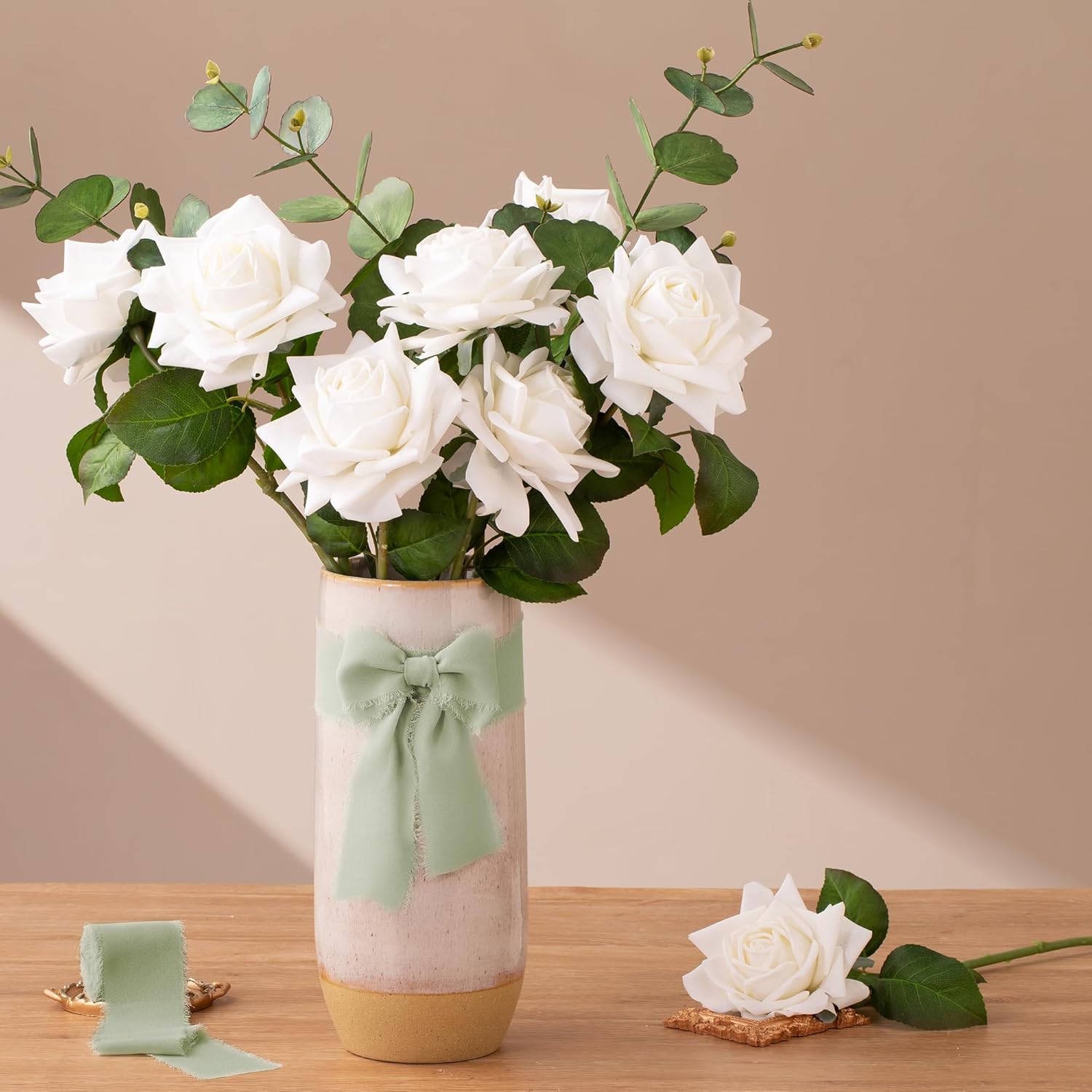 • 【Size and Color】Each roll of chiffon ribbon is 2 inches wide and 7 yards long, perfect for various creative uses such as making bows, decorating wreaths, and DIY crafts. This set includes 3 rolls sage green ribbons. These vibrant frayed ribbons add a rustic charm to your creations, ideal for bouquet wrap or gift ribbon.