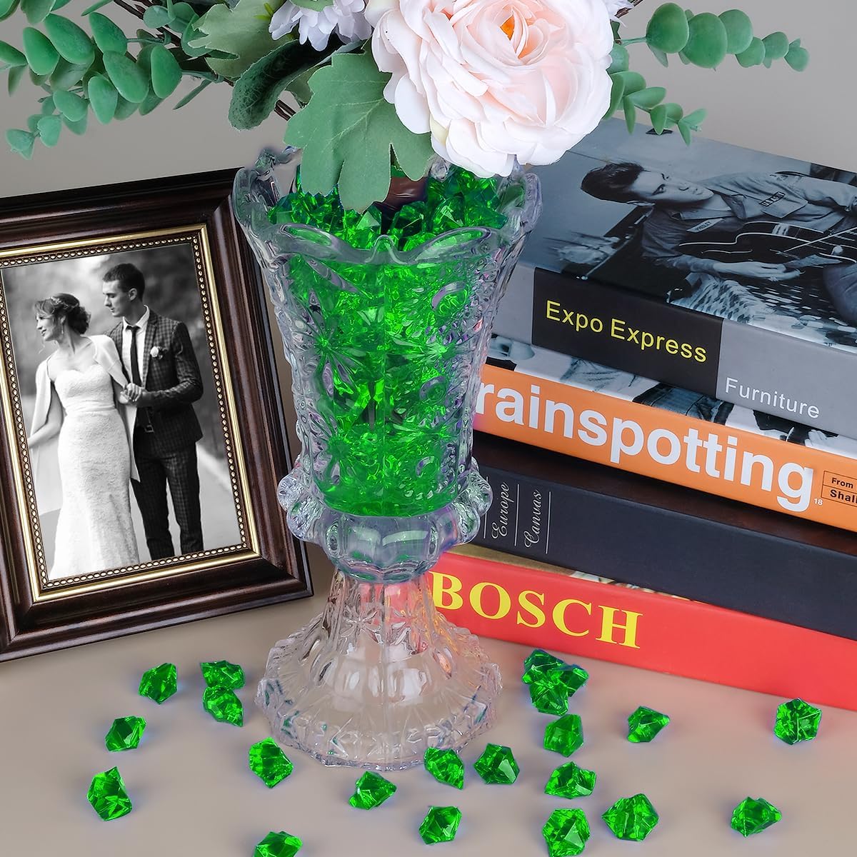Babenest Acrylic Crushed Ice Rocks, 150 PCS Fake Crystals Plastic Ice Cubes Diamonds Gems for Vase Fillers, Home Decoration, Table Scatter, Event, Wedding, Arts & Crafts (Green)