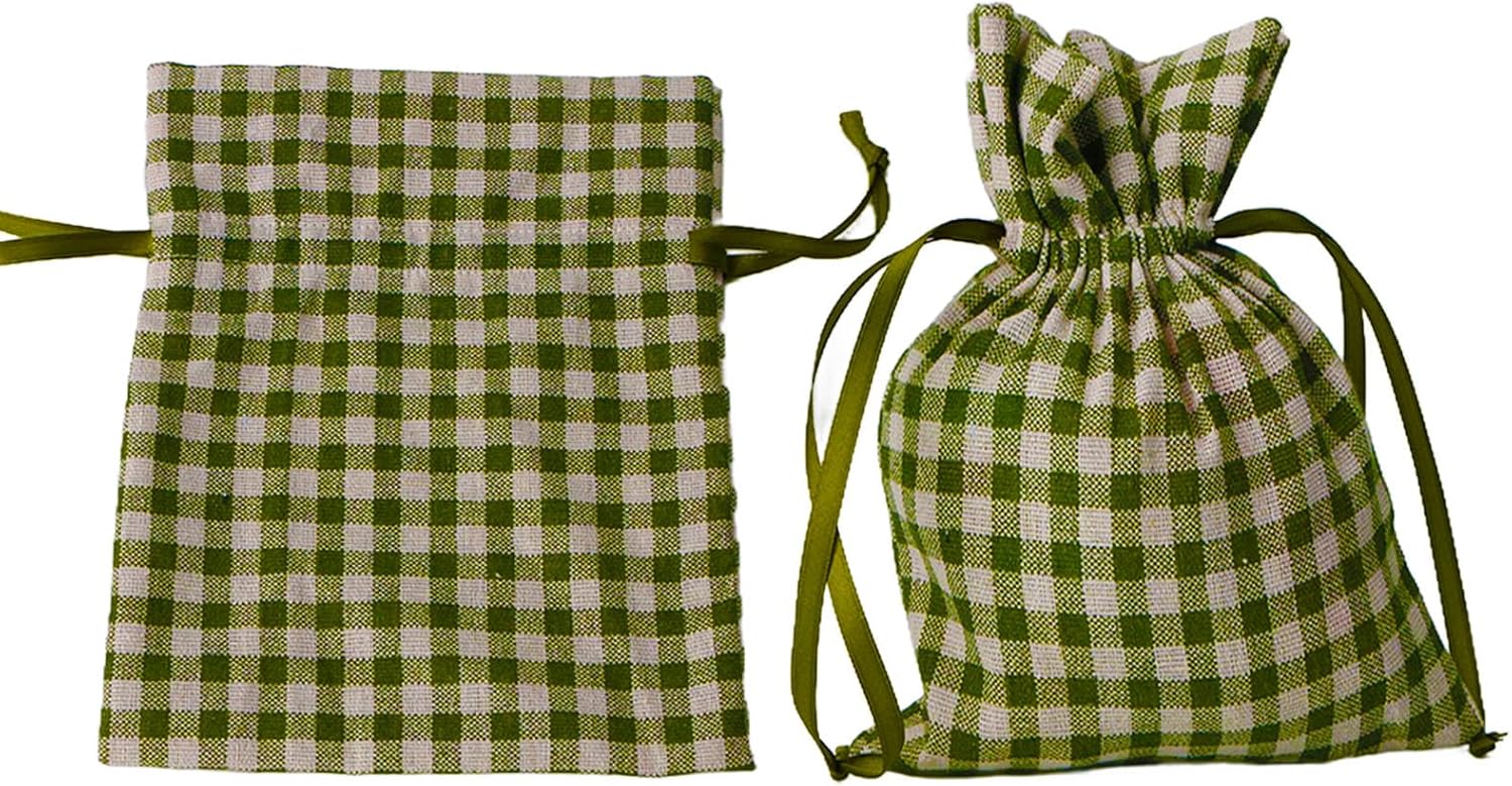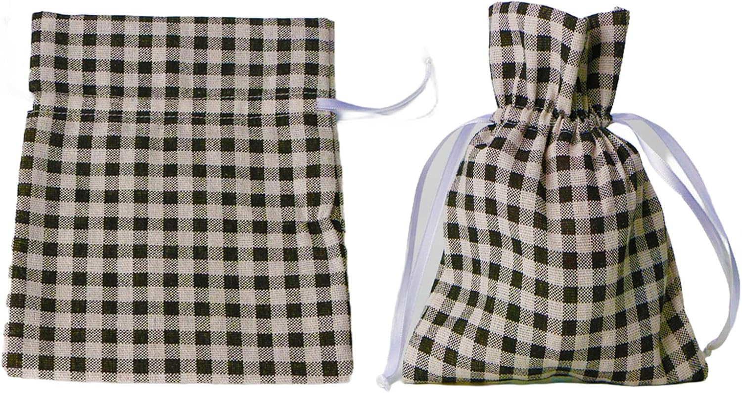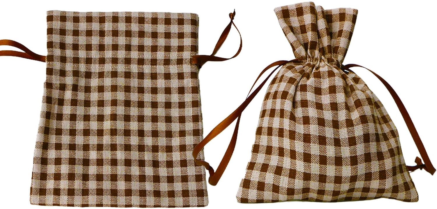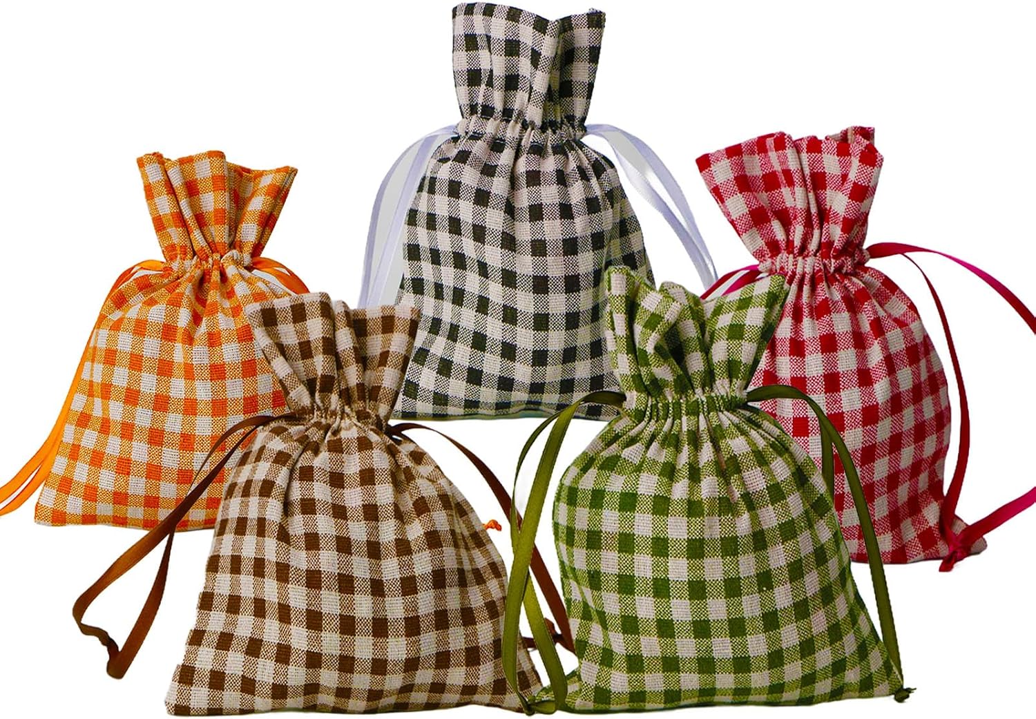 Meseey 5 Pcs Large Fall Burlap Bags with Drawstrings Buffalo Plaid Gift Bags Gingham Sacks Bags Reusable Pouch Bag for Thankgiving Birthday Party (fall plaid set 8Inch)