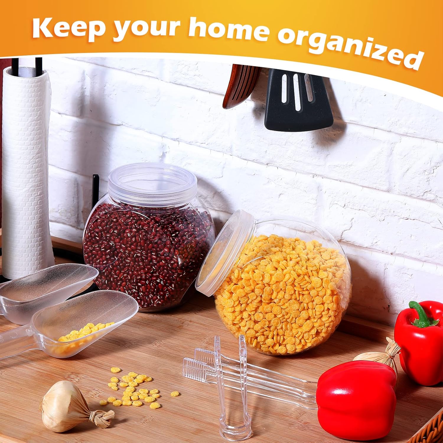Sunnyray 2 Sets 51 oz Plastic Candy Jars for Candy Buffet with Lids Clear Bar Jars with Scoops and Tongs Kitchen Office Party Cookie Storage Containers for Dry Food Snacks Candies Cookies Coffee Pods