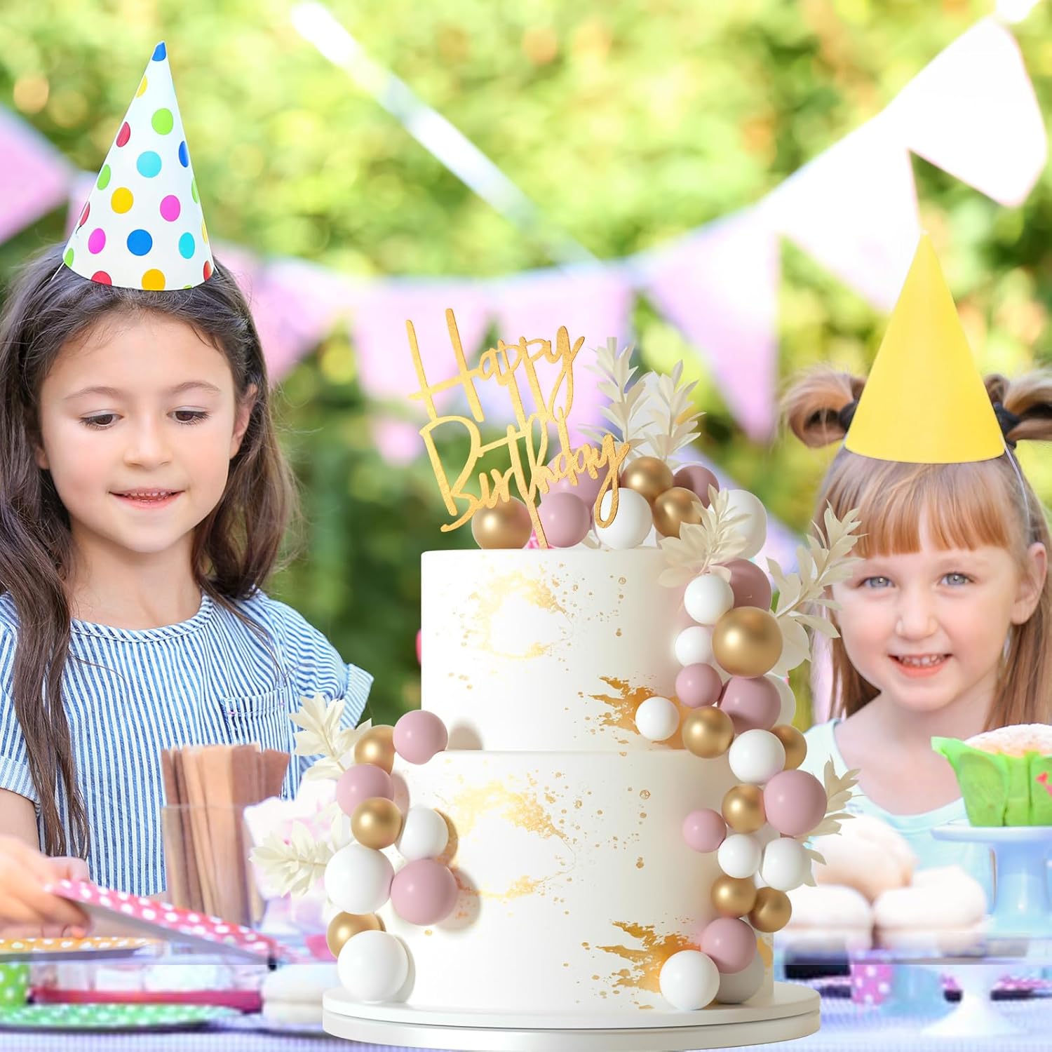 • Package included : 10pcs white grass cake toppers, 1pc happy birthday cake topper, 14pcs pink balls, 14pcs gold balls, 14pcs white balls.