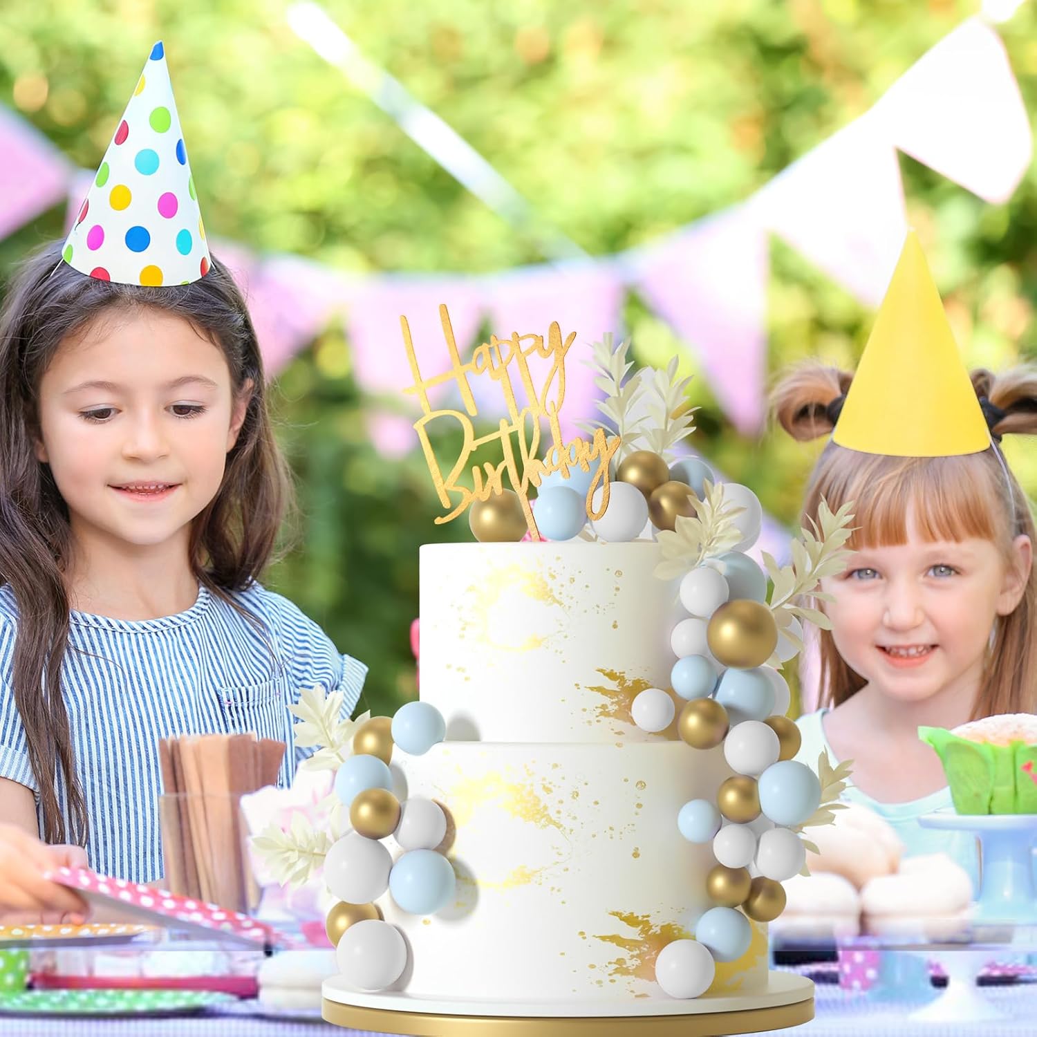 • Package included : 10pcs white grass cake toppers, 1pc happy birthday cake topper, 14pcs light blue balls, 14pcs gold balls, 14pcs white balls.
