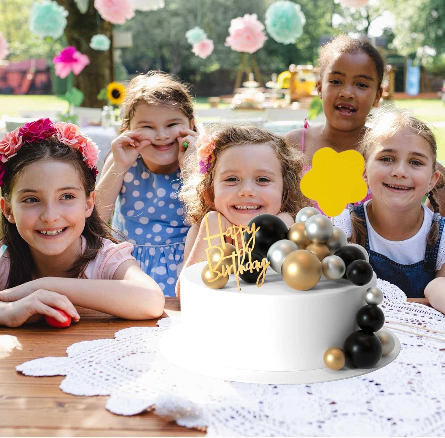 • Package included : 10pcs white grass cake toppers, 1pc happy birthday cake topper, 14pcs black balls, 14pcs gold balls, 14pcs sliver balls