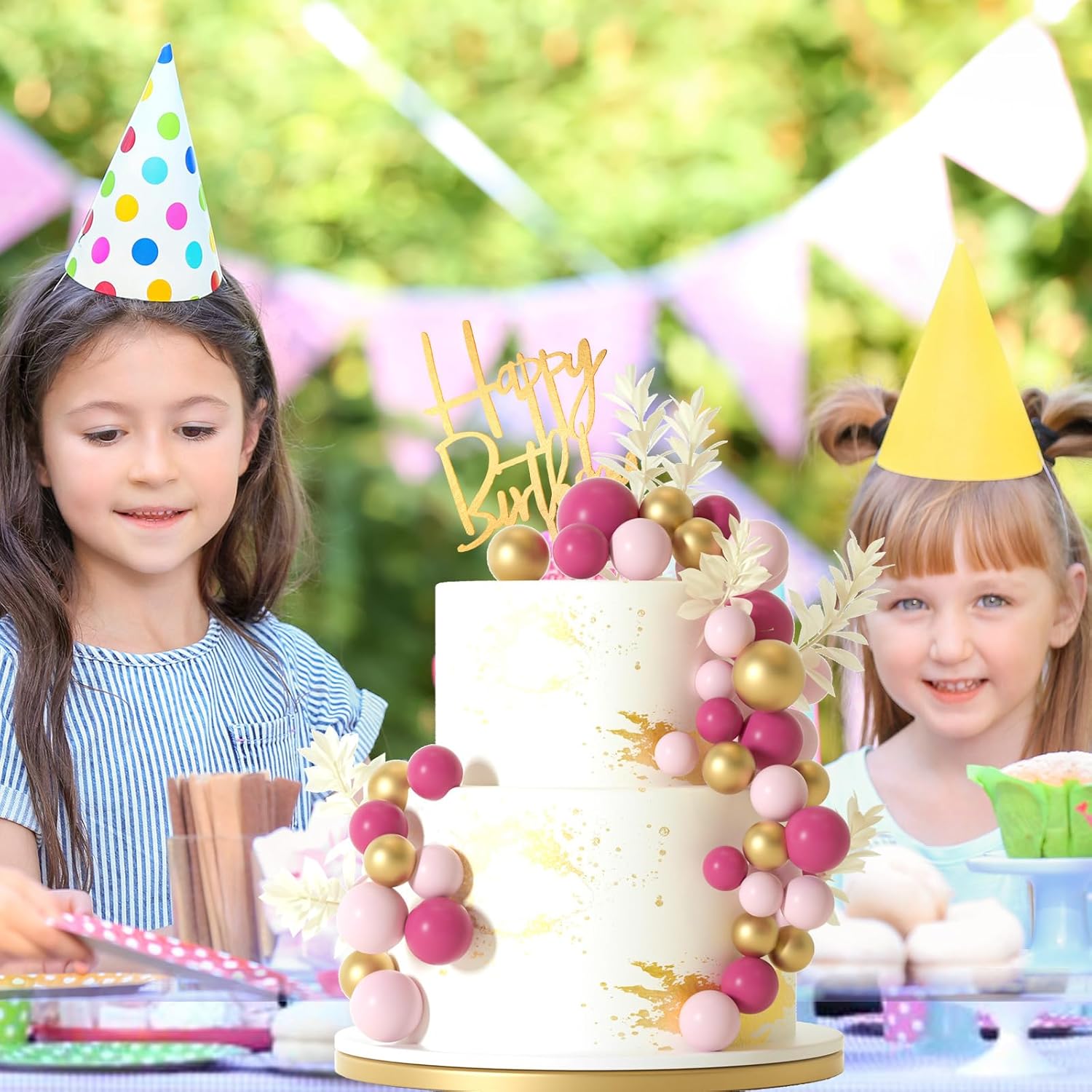 • Package included : 10pcs white grass cake toppers, 1pc happy birthday cake topper, 14pcs pink balls, 14pcs gold balls, 14pcs light pink balls.