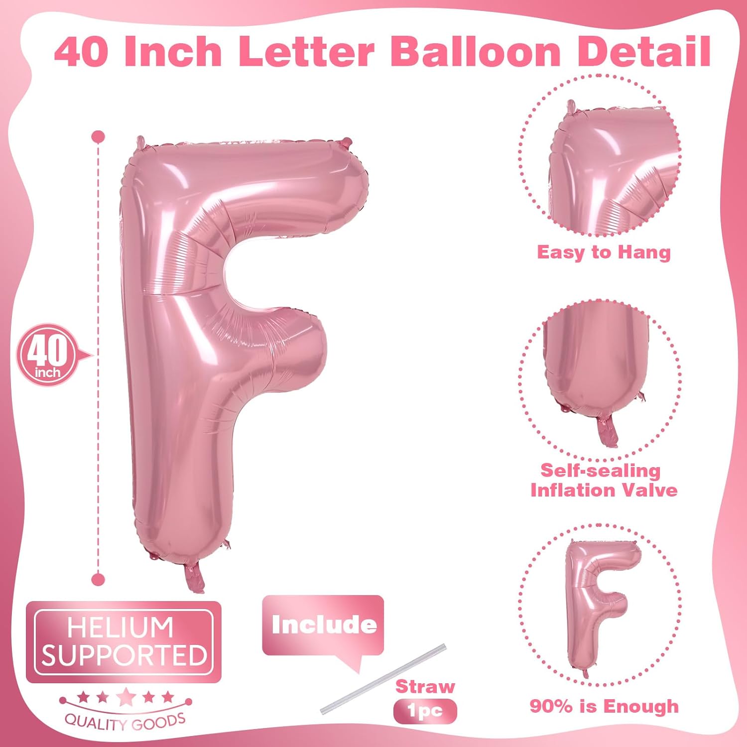 • ๐ŸŽˆ What You Will Get: Our giant letter balloon package includes 1pc 40 inch "F" letter foil pastel pink balloon and 1pc convenient straw for inflate. You can choose any big alphabet balloon to combine and customize the word you want to form. For example: OH BABY, BRIDE, GIRL, BIG SIS. Make your party more unique and meaningful.