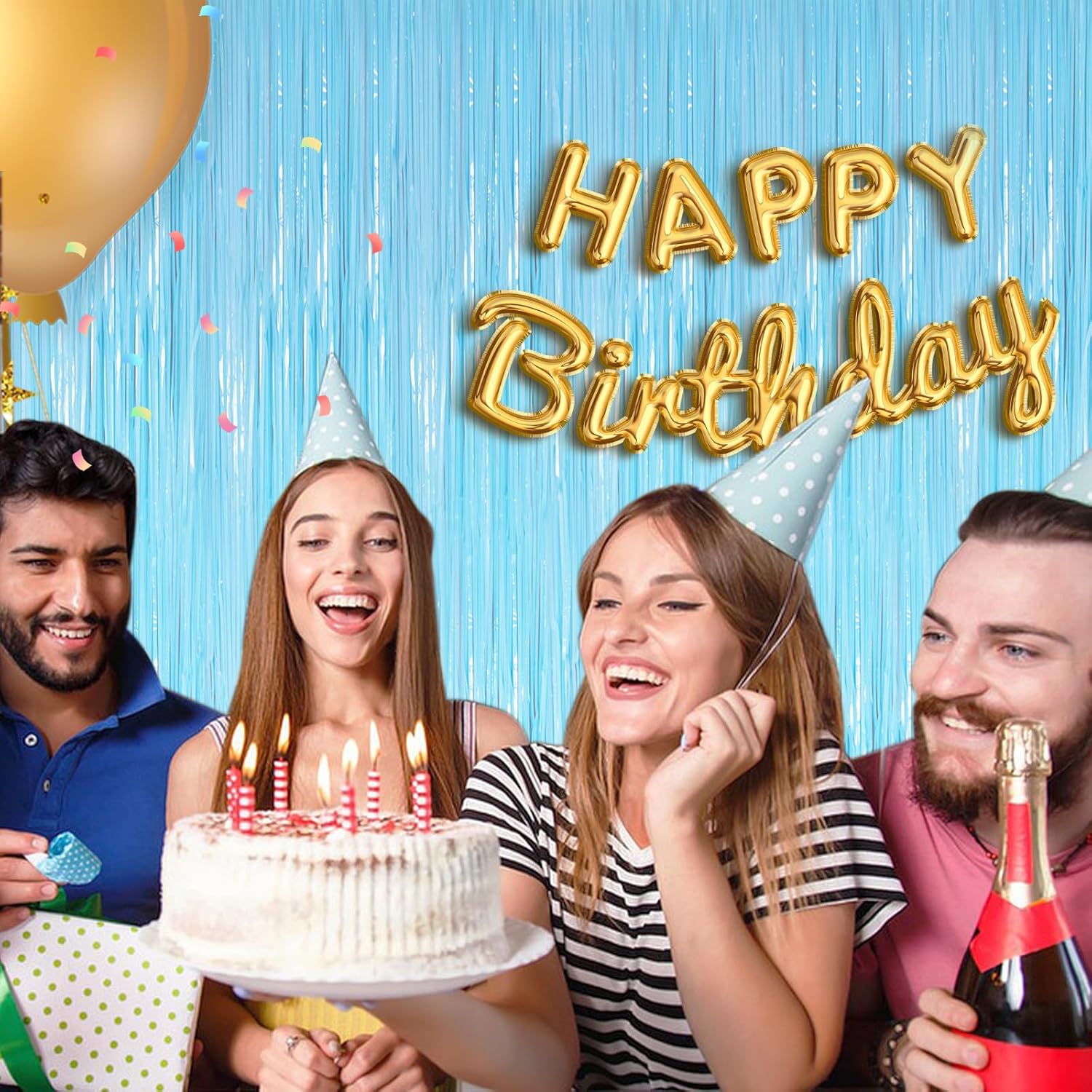 Macaron Blue Fringe Curtain Party Streamers 2Pack 3.3 x 8.3 Ft Foil Fringe Backdrop Curtains for Birthday Wedding Bridal Baby Shower Holiday Tinsel Streamers Blue Party Decorations Door Streamer