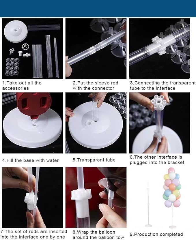 • 【Easy to Use】- Balloon stand kit is easy to assemble, you can assemble it in A Few Minutes, and very easy to disassemble and reuse. If You Want to Put This Outside With Slight Wind, We Recommend Using Double-Sided Tape on The Bottom of The Balloon Holder for Stability Outdoors.