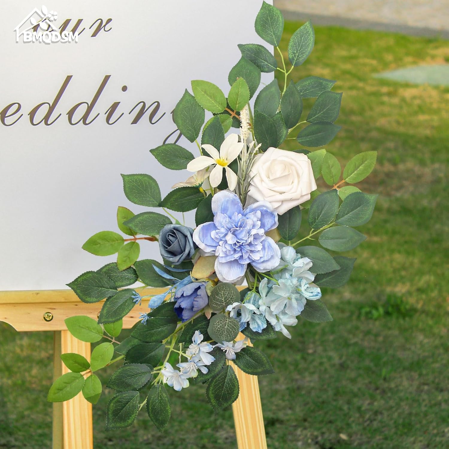 Pack of 2 Artificial Flowers for Backdrop Decoration, Wedding Arch Flowers,Reception Welcome Sign, Eucalyptus Garland, Suited to Aisle Decor and Wedding Arches(Blue)