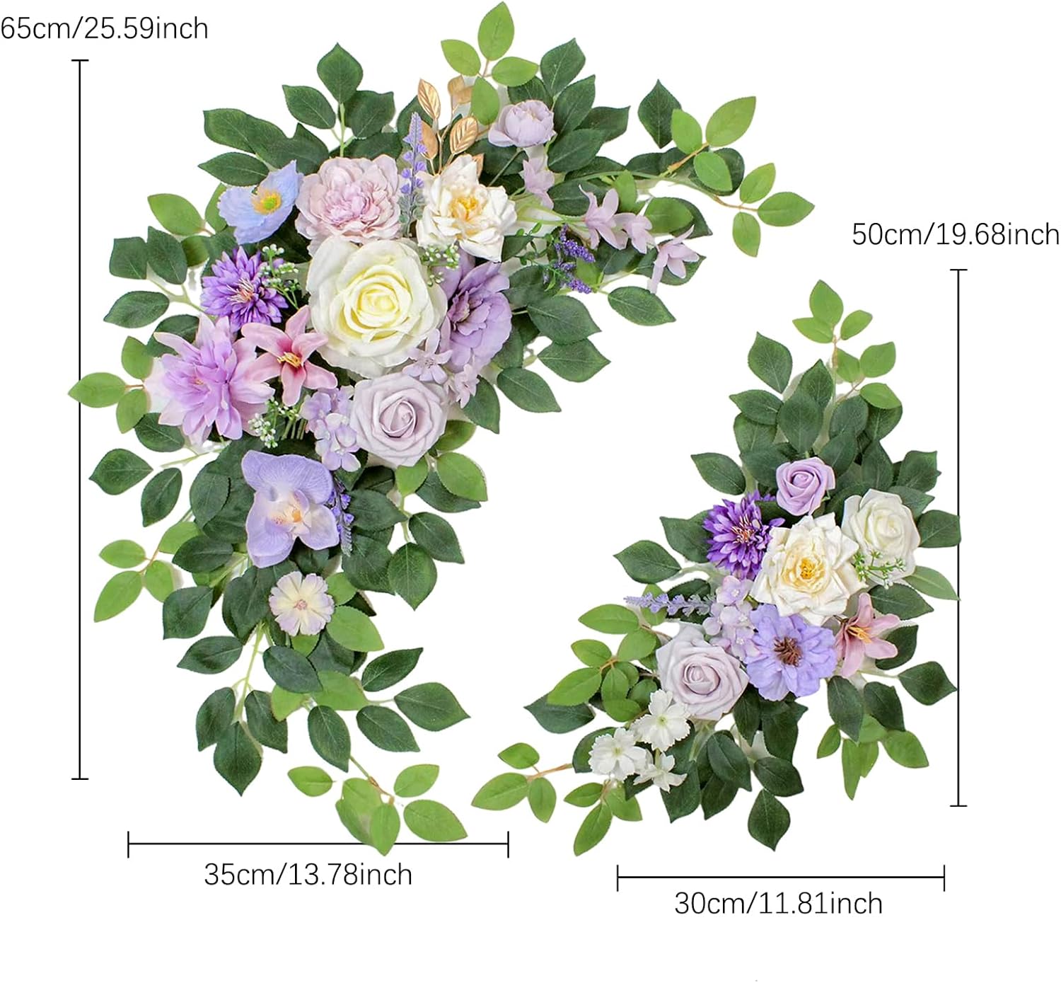 • 【Beautiful and Lifelike】-The large flower is 25.59 inches long, and the small flower is 19.68 inches long. Due to prolonged compression of packaging, there may be deviations in product size. We suggest that you gently tidy up or use hot air from a hair dryer to help restore the shape. These flowers will make your wedding decoration elegant and charming.