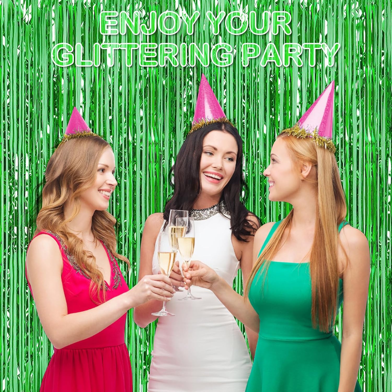 • 【Ideal Party Decoration】Show off your creativity and make your party stand out by using these green foil fringe curtains to decorate your party. You can hang them on a door or wall as a surprise entrance to the party, or pair them with LED lights, balloons, and banners to create a shiny party backdrop for different themes and occasions.