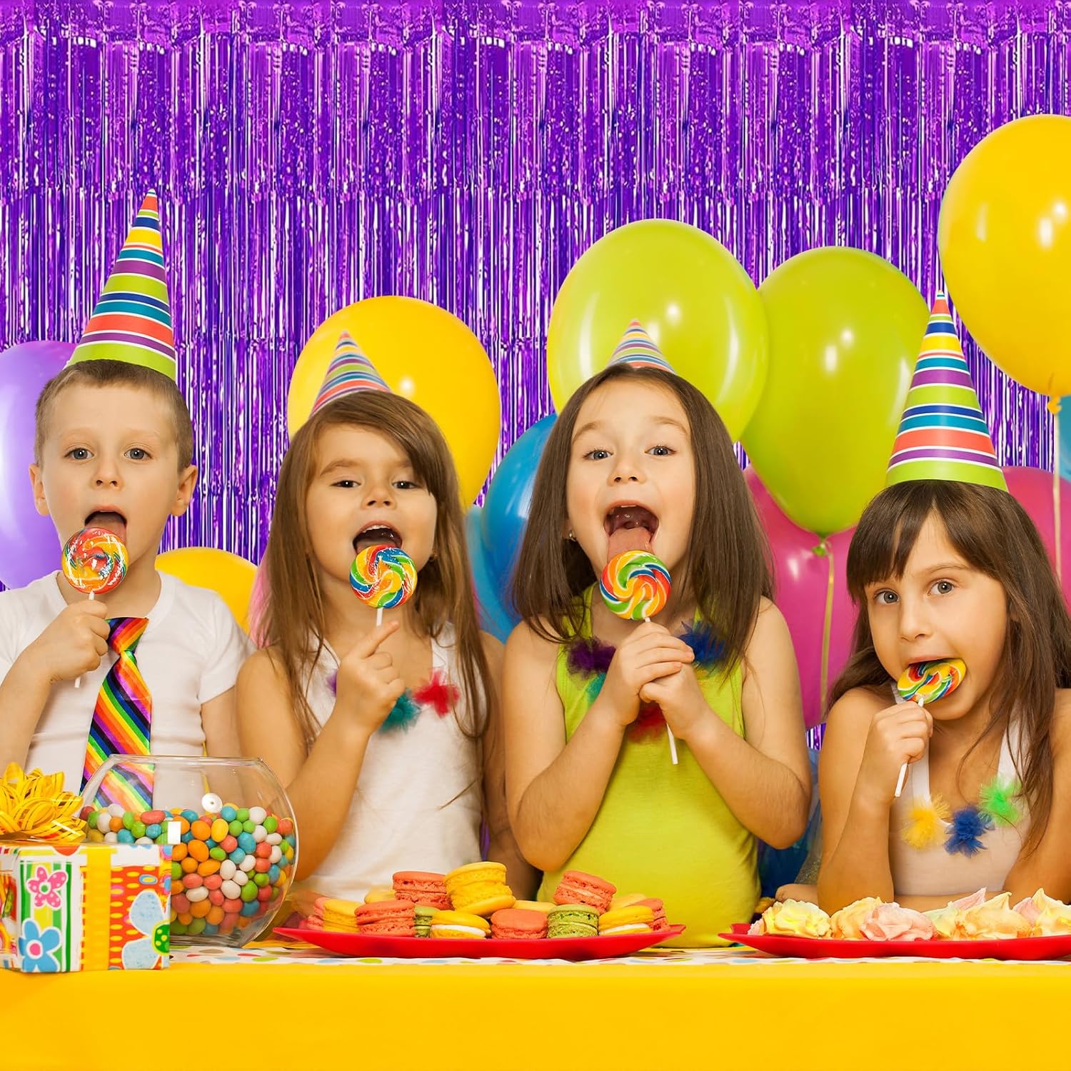 • 【Ideal Party Decoration】Show off your creativity and make your party stand out by using these purple foil fringe curtains to decorate your party. You can hang them on a door or wall as a surprise entrance to the party, or pair them with LED lights, balloons, and banners to create a shiny party backdrop for different themes and occasions.