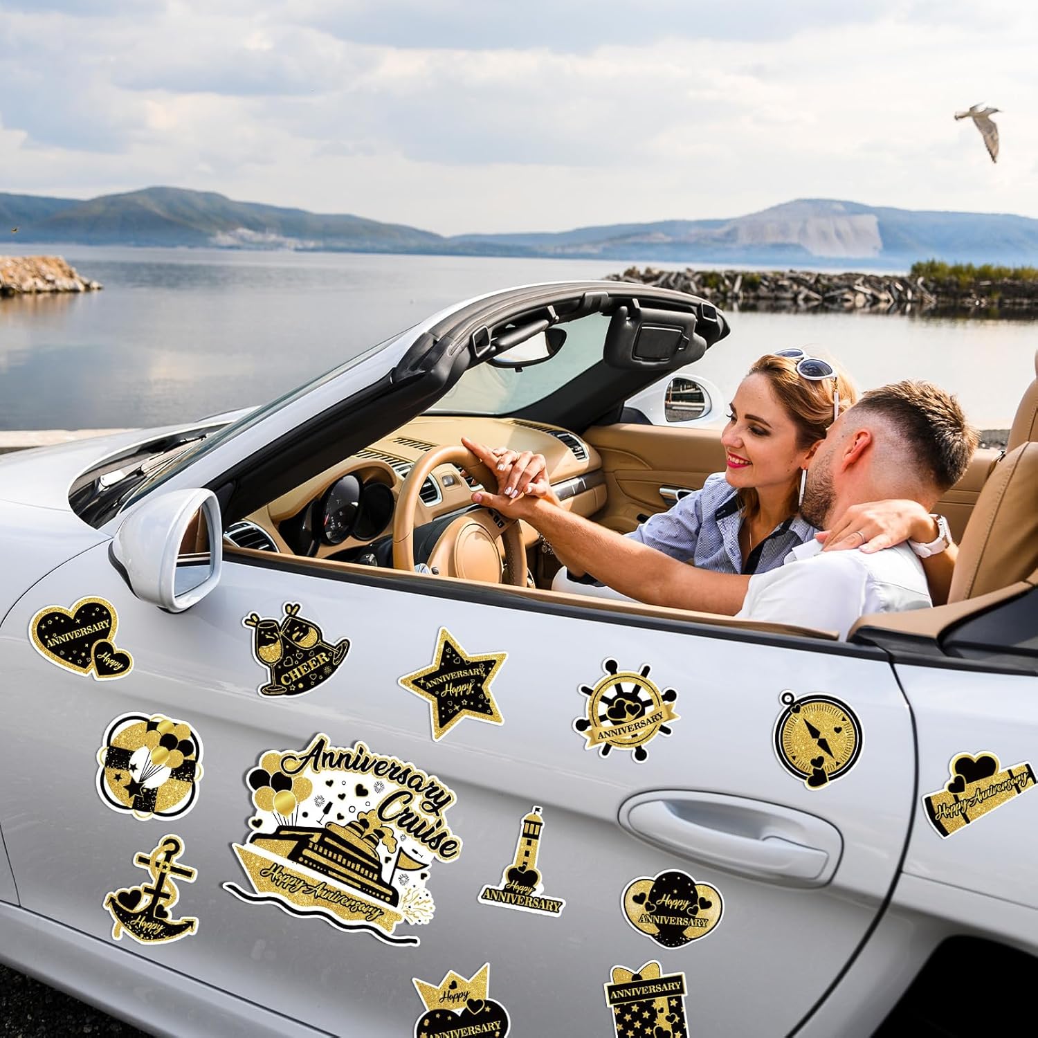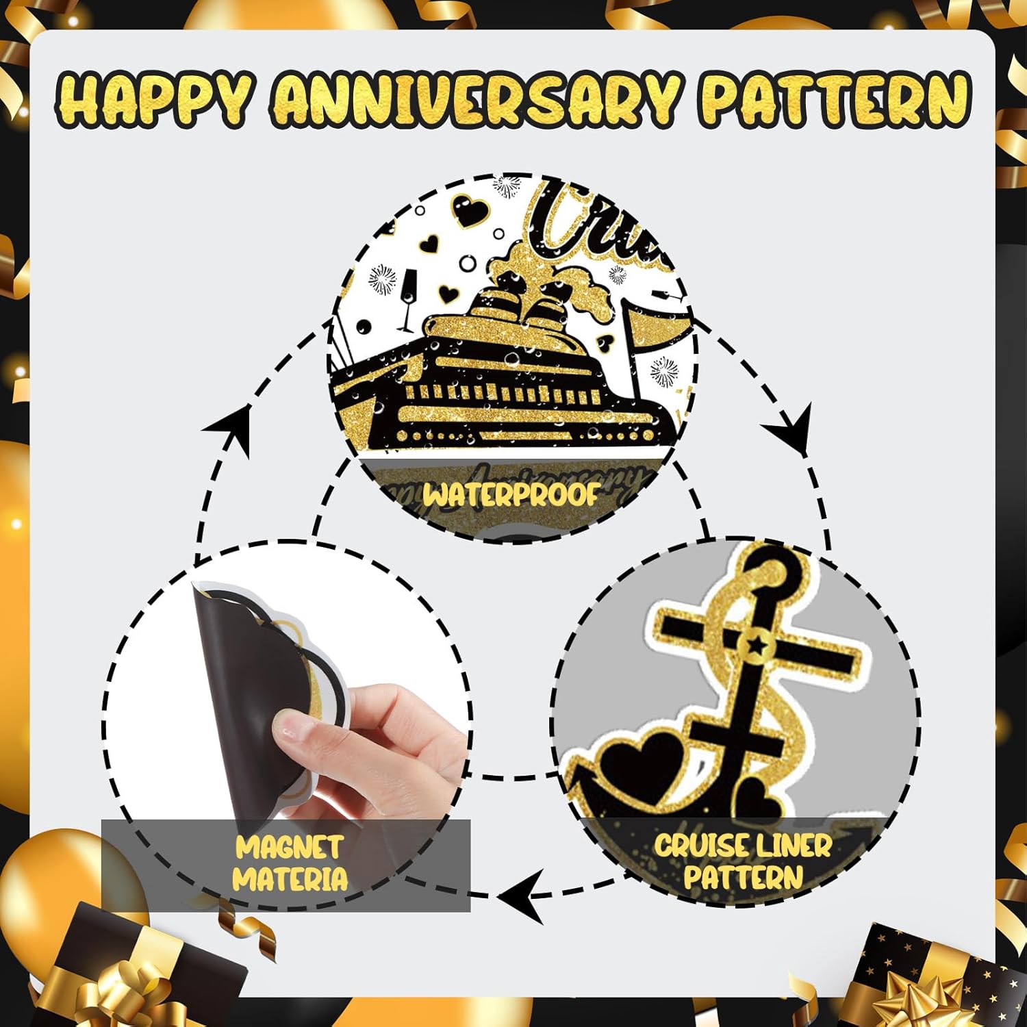 • 💝Cruise Door Magnets Decorations:You will get 16pcs of Black Gold Happy Anniversary Cruise Door Magnets.These Happy Anniversary Cruise Door Magnets have "Happy Anniversary Cruise" and many shapes.With these beautiful happy anniversary magnets decorations, they further set off a atmosphere of your anniversary party.