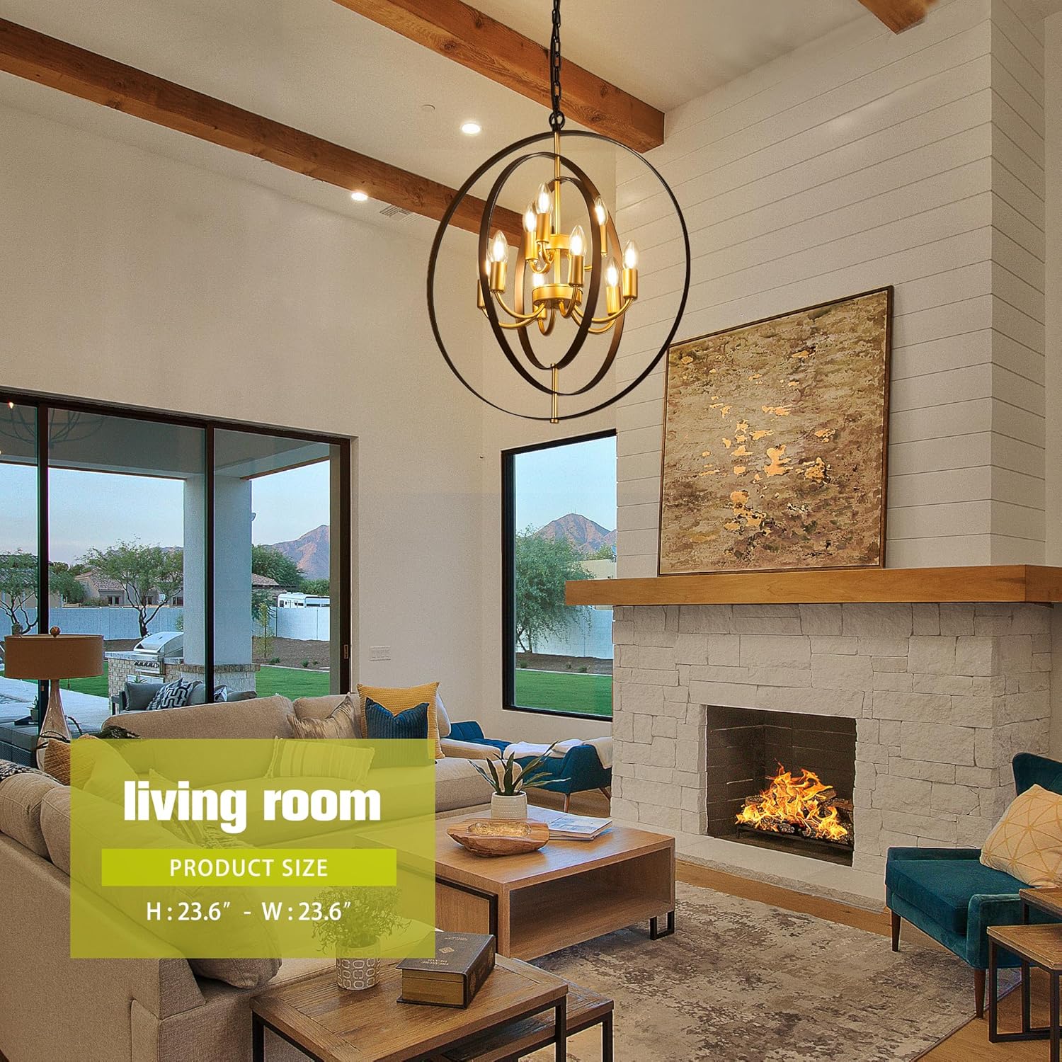 • 【Unique Design】Metal globe chandelier with adjustable round shade, by rotating the circle, you will get round chandeliers of different shapes. The vintage and black gold design will add a fashionable look, while complementing your rooms decor. suitable for living room, dining room, hallway, bedroom, kitchen island, etc.
