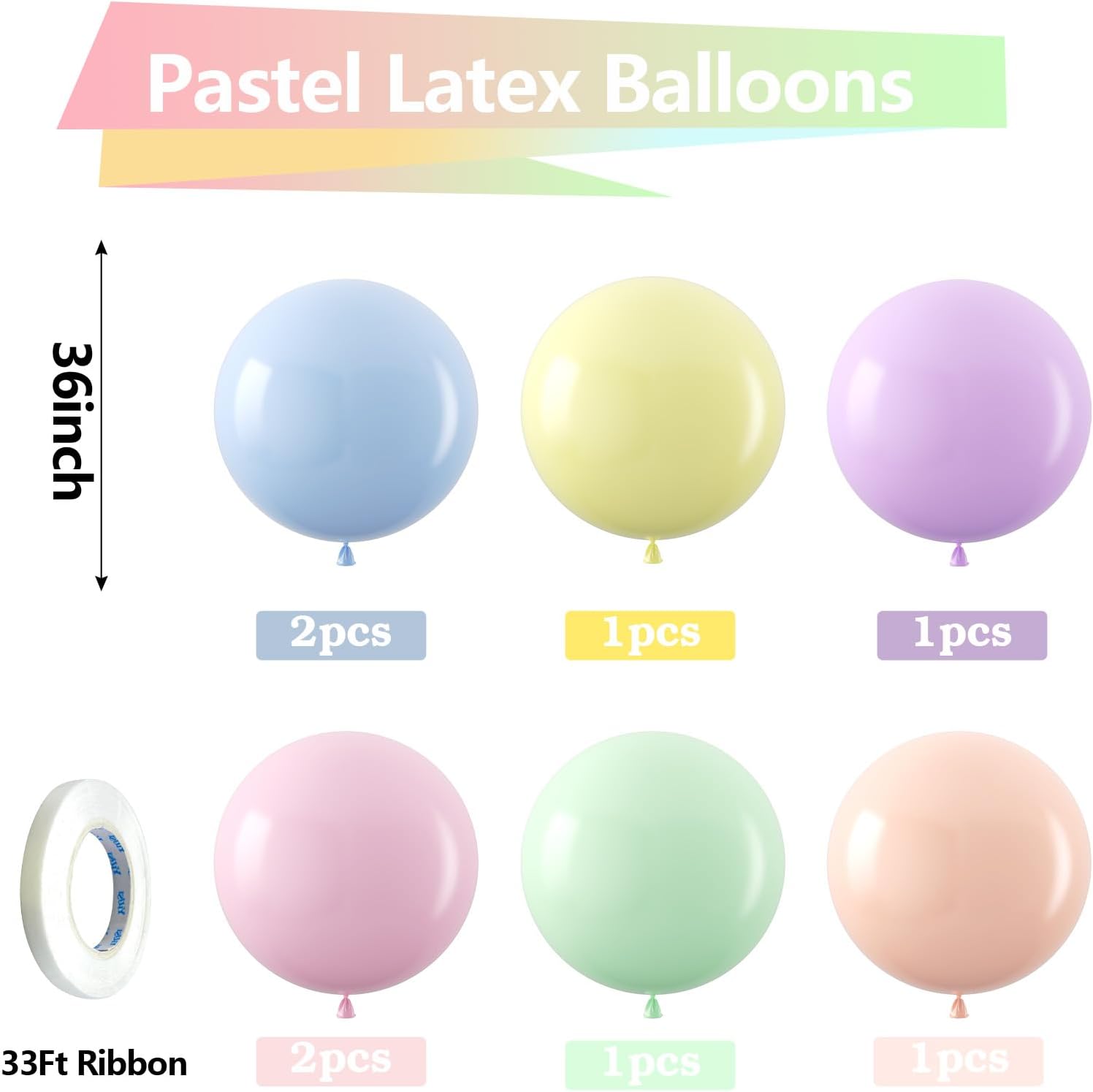 • 【Set Includes】- Each sets contains 8pcs 36 inch large pastel color balloons and 1pcs white ribbon (33 feet total). The right amount quantity and most suitable color for each party decoration.