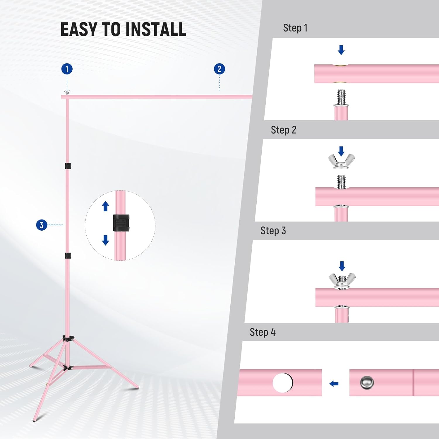 • Adjustable Height & Width: With adjustable height (2.3'-7'/70cm-2.1m) and width (5'-10'/1.5-3m), the backdrop support system holds your backdrop in place and helps you create different backgrounds for photography work