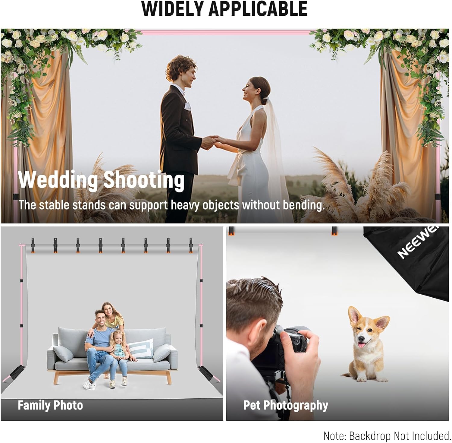 • Backdrop Support System: Comes with 2 backdrop stands, 4 crossbars, and other accessories to ensure stable support for your backdrop (Backdrops Not Included). Ideal for photo studios, parties, weddings, and other events