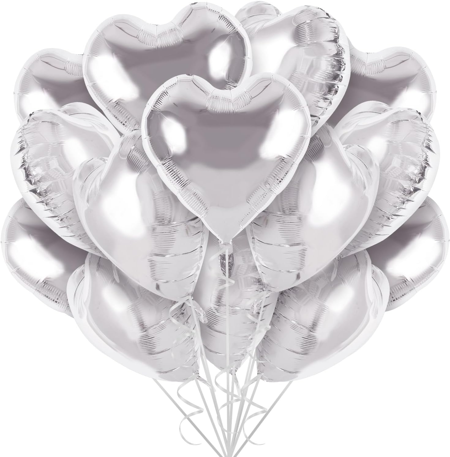 TONIFUL 30Pcs 18 Inch Silver Heart Balloons Silver Heart Shape Foil Mylar Balloons Decoration for Birthday Valentine's Day Wedding Bridal Shower Anniversary Engagement Party Supplies