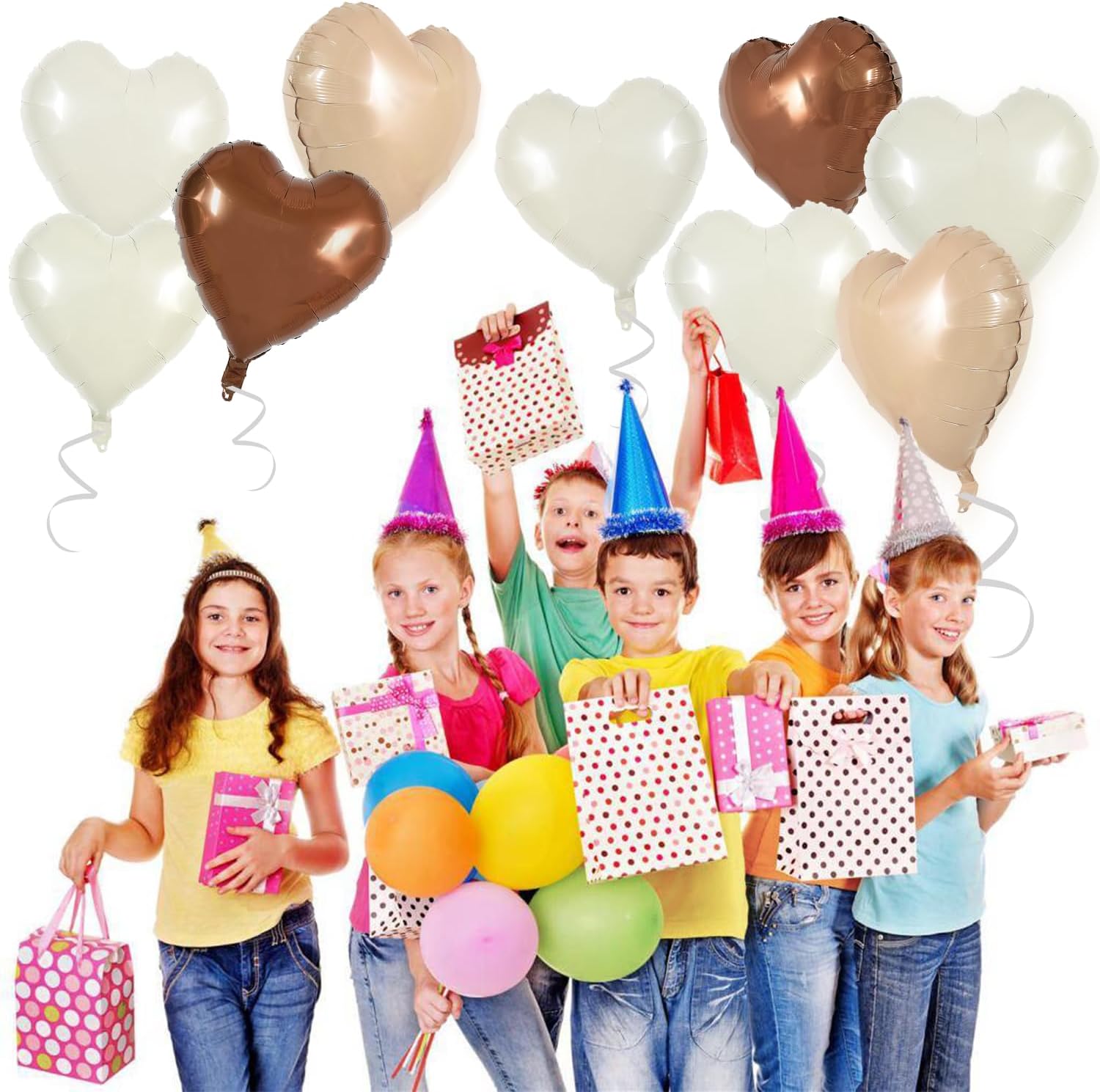 TONIFUL 30Pcs 18 Inch Cream White Heart Balloons Light Brown Coffee Foil Balloons Decoration for Thanksgiving Birthday Valentine's Day Wedding Bridal Shower Anniversary Engagement Party Supplies