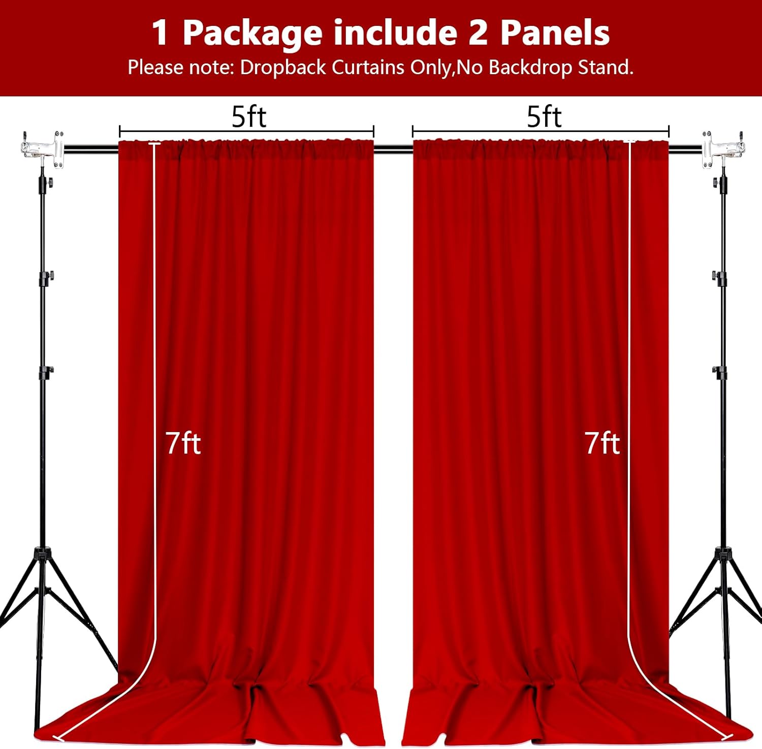 • DIMENSIONS: Each order is for 2 (two) polyester curtains. Each curtain measures 5 feet wide x 7 feet high. Entire backdrop measures 10 feet wide x 7 feet high.Each curtain panel comes with 4 inch rod pocket on top, fit up to any standard rods. (Please note: Dropback Curtains Only,No Backdrop Stand.)