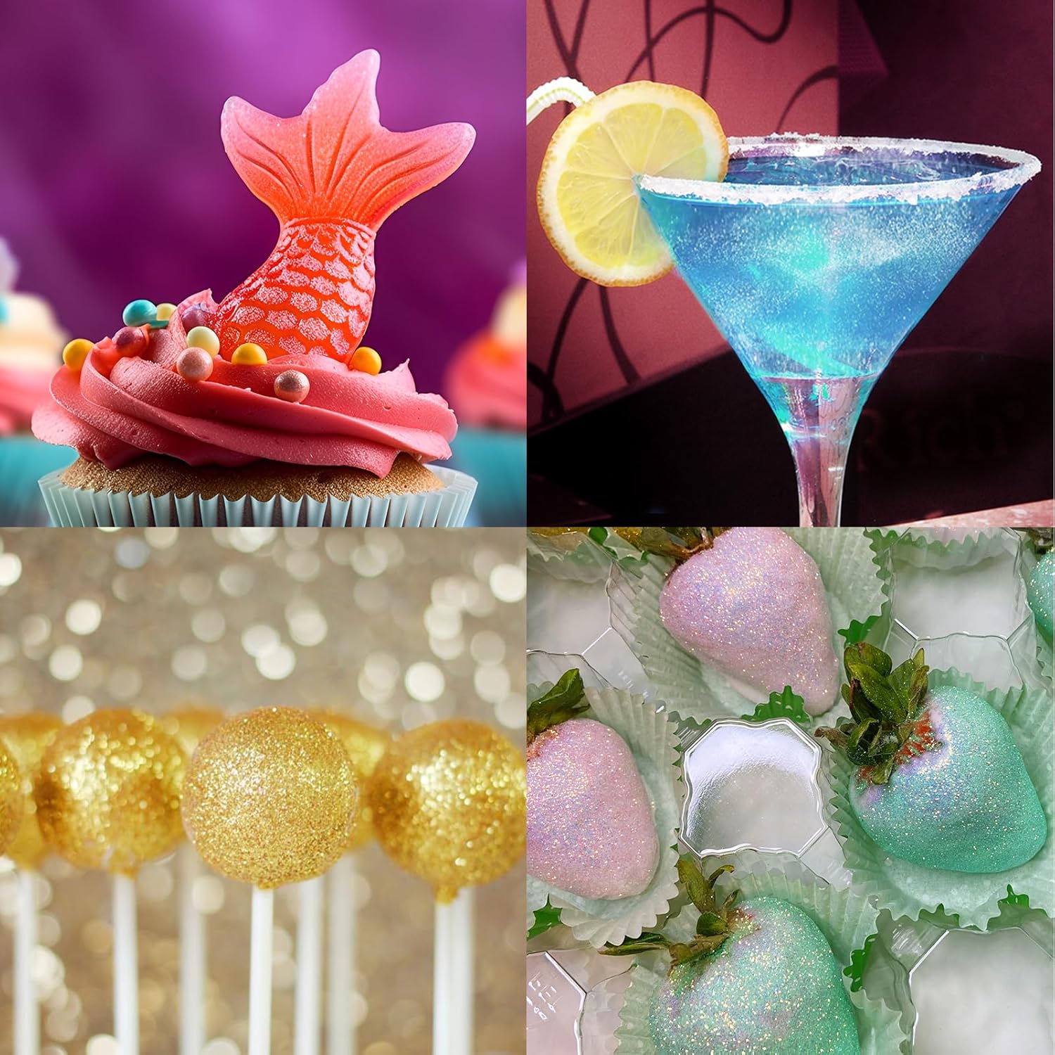 • Long-Lasting Shine: Edible glitter has excellent adhesion on both wet and dry media, can be stored for an extended period without losing its shimmer and shine, this ensures that your creations remain beautiful and stunning for a longer time, please store glitter in a cool, dry place after use and do not expose it to high temperatures.