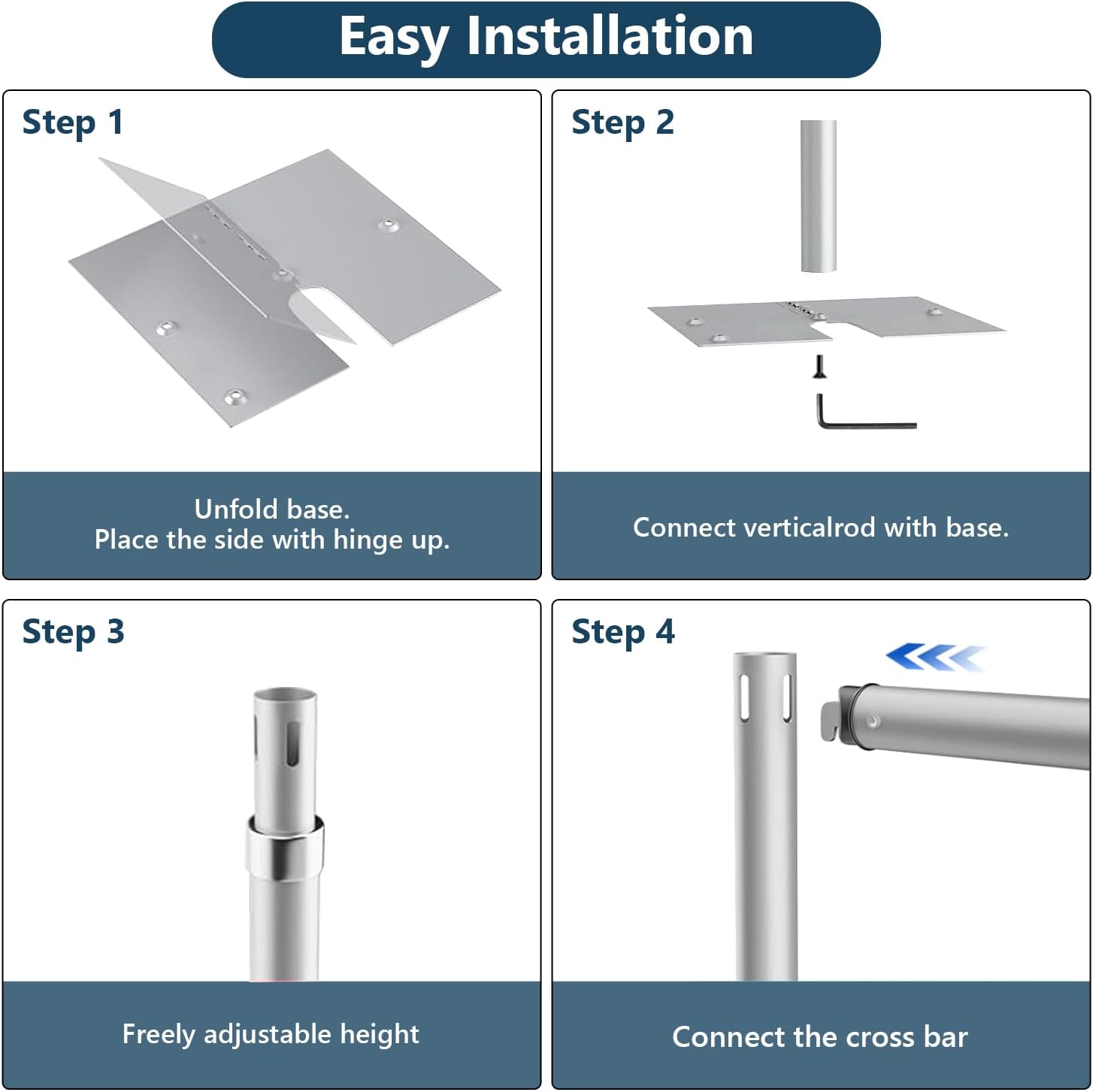 • [2 x Support uprights] Made of 100% Aluminum Material. The diameter is 1.48 inches, Stable and No Wobbly even though outdoor use. The Support uprights Max Height Range is 8.6ft / 260cm, with safety rotary height adjustment.
