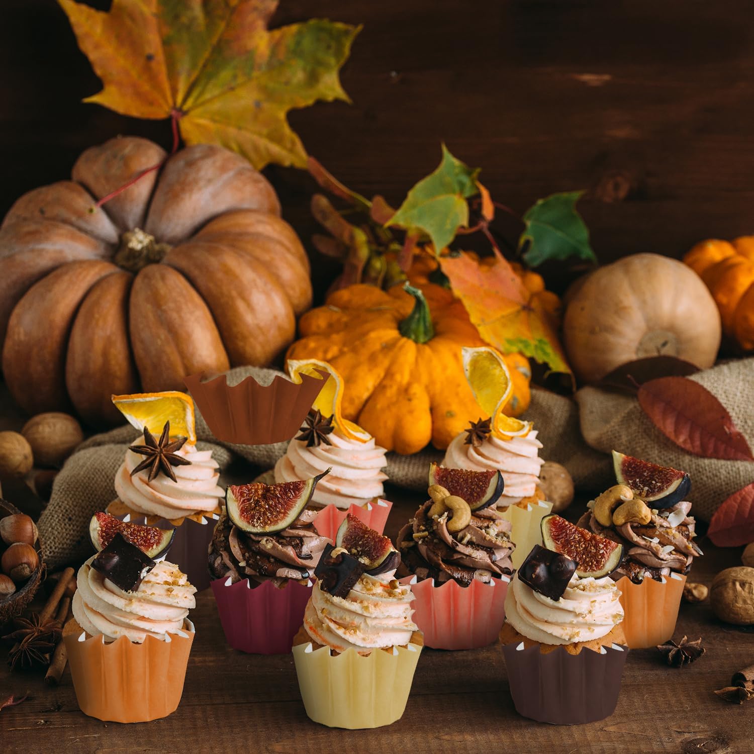 Quera 300Pcs Fall Grease-Resistant Mini Cupcake Liners Yellow Orange Wedding Muffin Baking Cups Baby Shower Cupcake Wrappers for Wedding Birthday Holiday Party or Baby Shower(1.18 x 1.18 in)