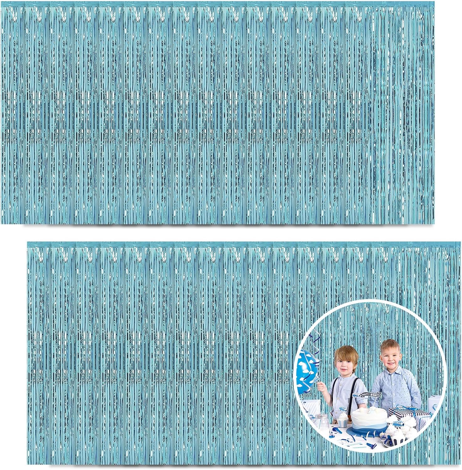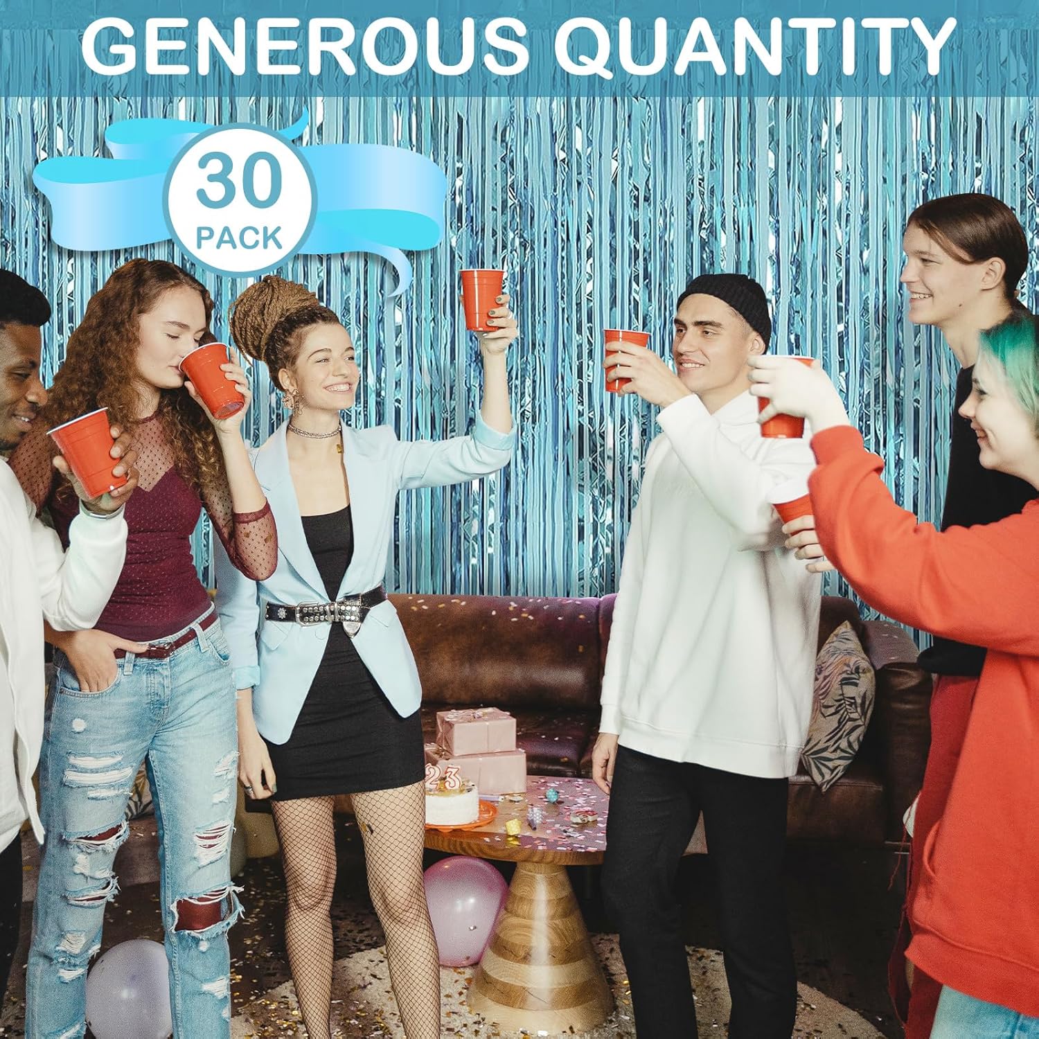 30 Pack Light Blue Foil Fringe Curtain Backdrop, 3.3x8.2 Feet Metallic Tinsel Streamer Curtains Photo Booth Props for Baby Shower/Bachelorette/Graduation/Birthday/Ocean Theme Party Decorations