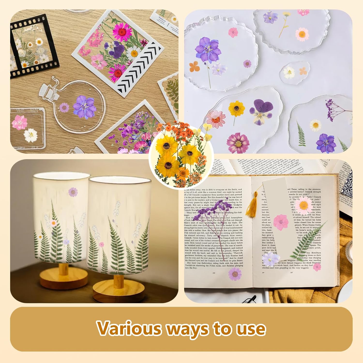 • MULTI-PURPOSE MULTI-FUNCTION: These pressed flower wall art can not only be used to make necklaces, earrings and other jewelry, scrapbooks, journals, bookmarks, cell phone cases, cards, candles, soaps, make-up and other DIY resin crafts, wall decorations, paintings, decorative vases, but also your creativity and imagination can be fully embodied in the process of DIYing these real dried flowers to experience a different kind of happiness.