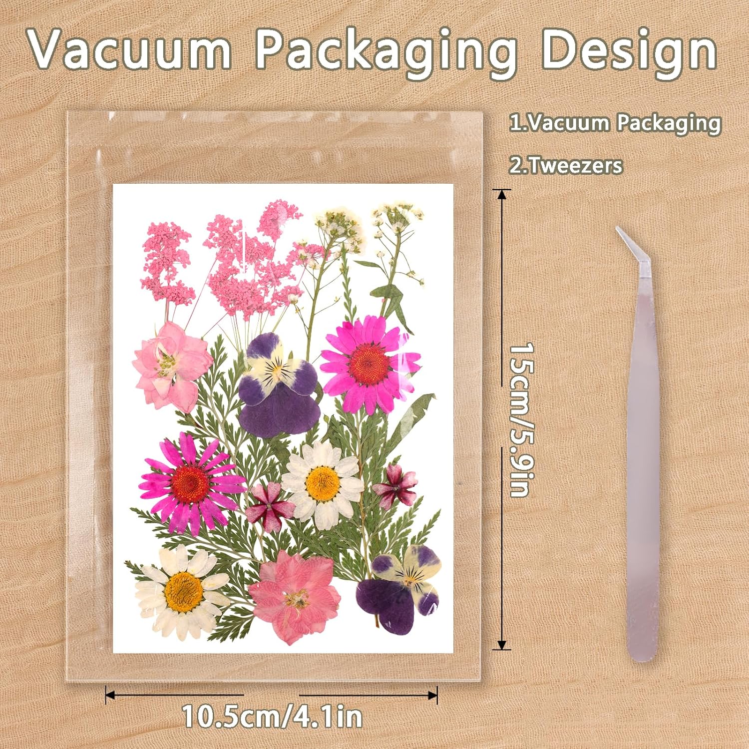 • DRY FLOWER SET: This dry flower set includes 100+ pieces of real dry pressed flower leaves and 1 pair of curved tweezers, each dried flower has a different style, all intact and vacuum preserved on the card, protects the flowers and leaves while maintaining the color, shape, and scent of the dried flowers, guarantees safe transportation of the pressed flowers, which can satisfy your crafting and decorating needs for DIY.