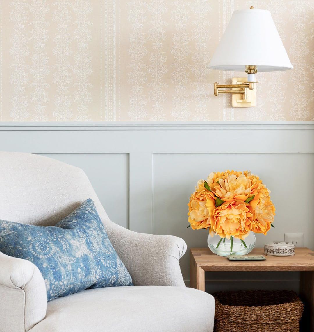 • 💐【Realistic & Elegant】Peonies fall flowers artificial for decoration with glass vase suits look so beautiful, unique craft design, brings different visual enjoyment to your home, create a romantic atmosphere, make you happy every day. Faux water on the vase adds to the pulchritude and realism. More realistic because of the details!