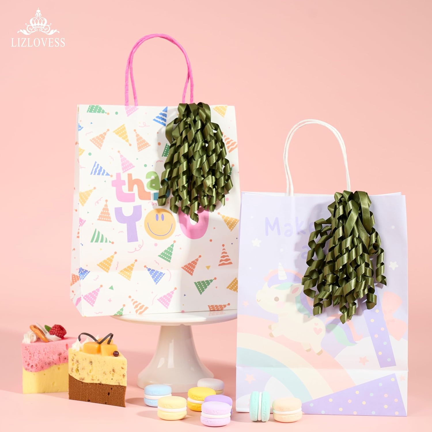 • 🎉Bow Size: approximately 6 inches, with 5" clear twist ties on the back and a square self adhesive sticker