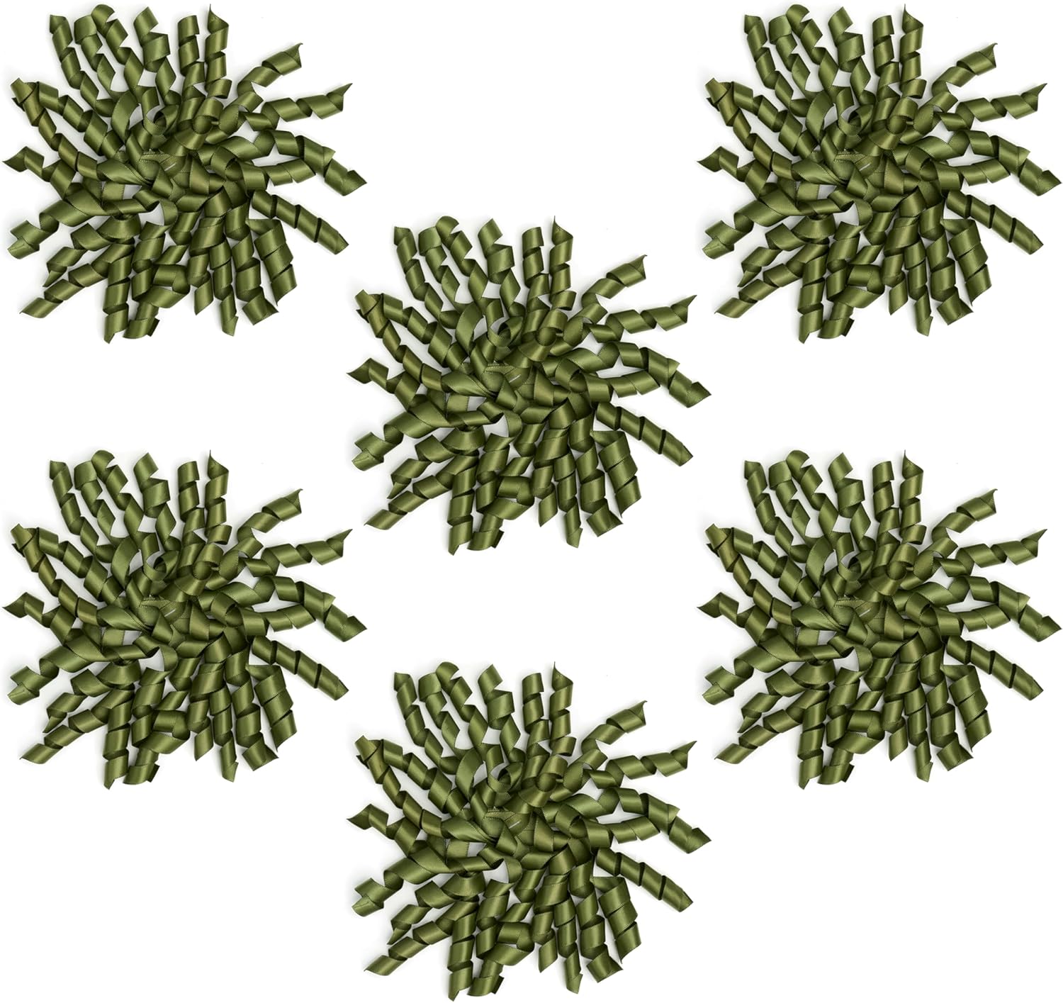 6 Inch Moss Curly Bows for Gift Wrapping Set of 6, Self Adhesive Bows Olive Green Gift Bows for Presents, Satin Ribbon Bows for Birthday, Wedding, Christmas, Bridal Shower
