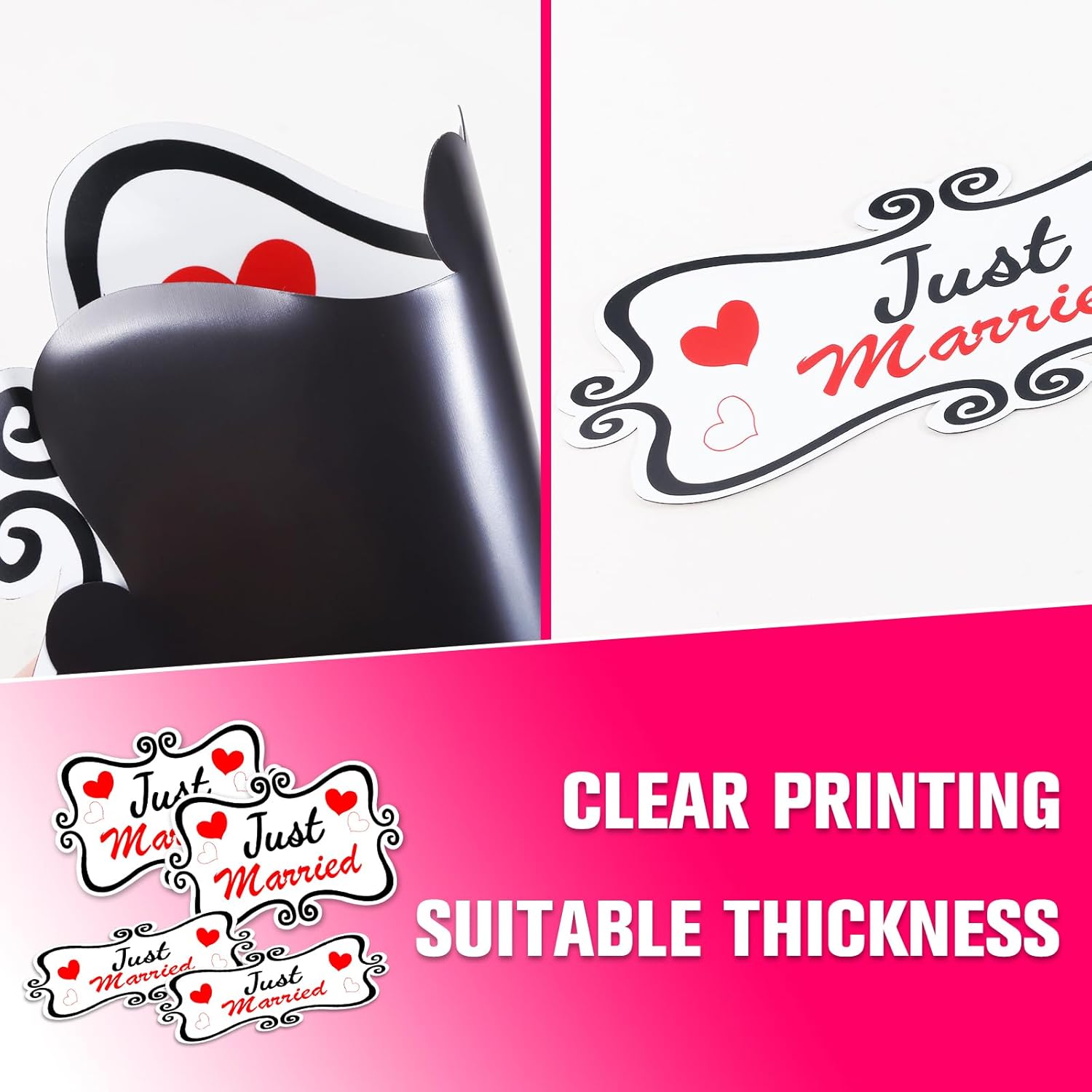 • CELEBRATE IN STYLE: These just married car magnets allow you to proudly show off your new marital status wherever you go in fun, colorful vinyl designs. If you receive a magnet that is warped and not magnetic, please contact me promptly