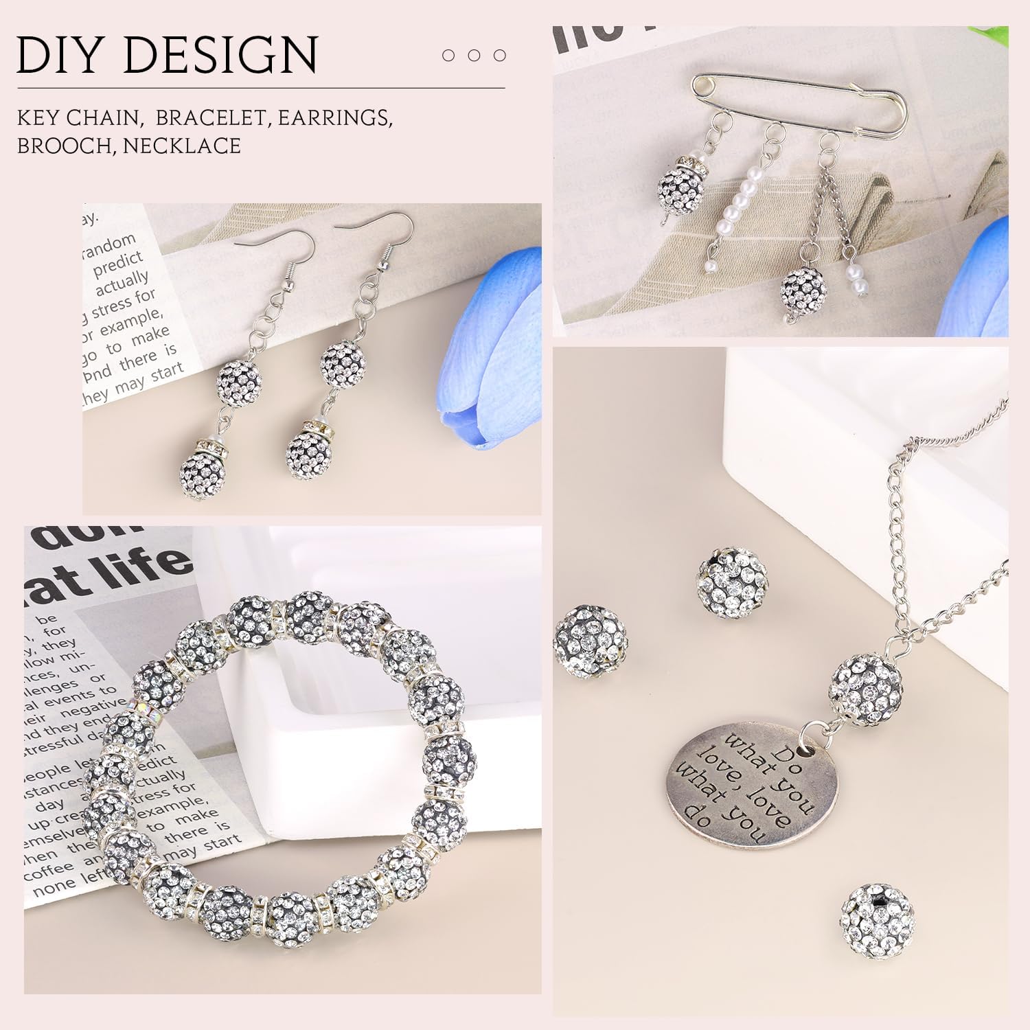 • WIDE USAGE -- Perfect for DIY Shamballa bracelets, necklaces, earrings, key-chains, pins, hair accessories and other jewelry making. Also suitable for decorating pendants, clothing accessories, ornaments and other decorations.