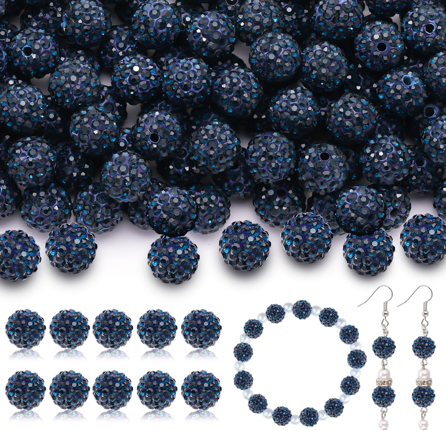 105pcs 10mm Rhinestone Beads for Jewelry Making, Blue Black Shiny Round Disco Ball Beads Bulk, Sparkle Crystal Clay Christmas for Bracelet Baseball Necklace Earring Crafting and DIY