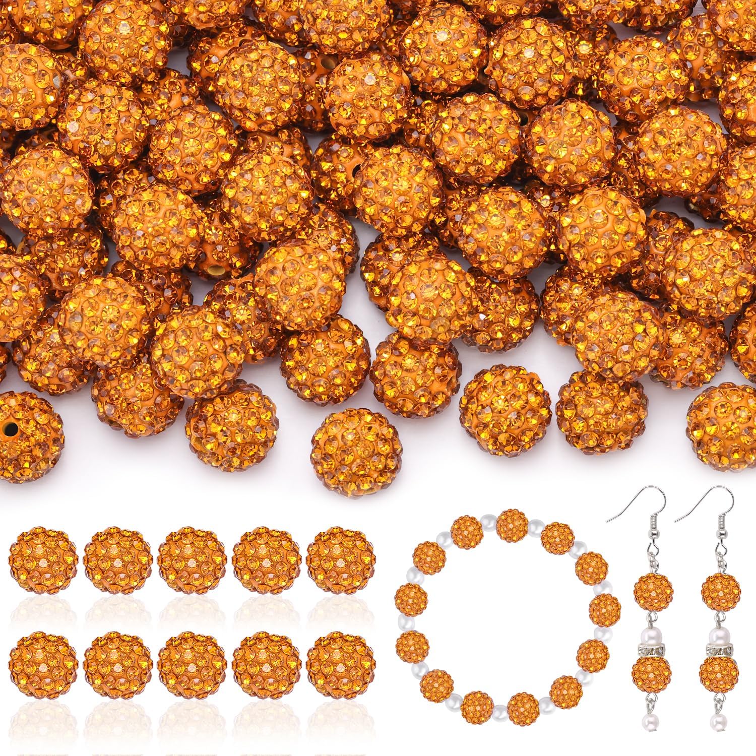 160pcs 10mm Rhinestone Beads for Jewelry Making, Golden Shiny Round Disco Ball Beads Bulk, Sparkle Crystal Clay Christmas for Bracelet Baseball Necklace Earring Crafting and DIY