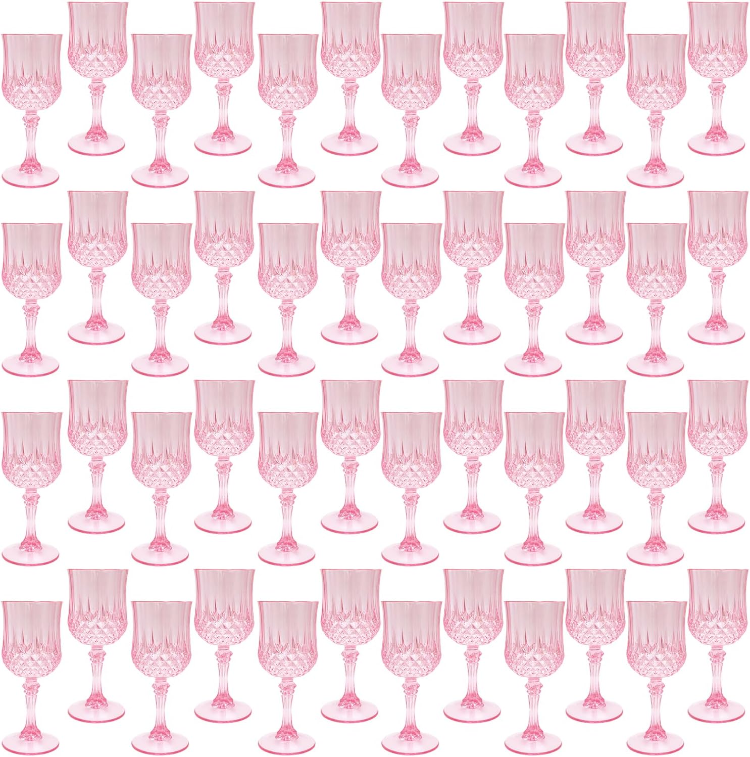 Plastic Wine Glasses,Plastic Goblets Vintage Style Cordial Drinking Glasses for Wedding Reception, Grand Event Party Supplies (48, Pink)