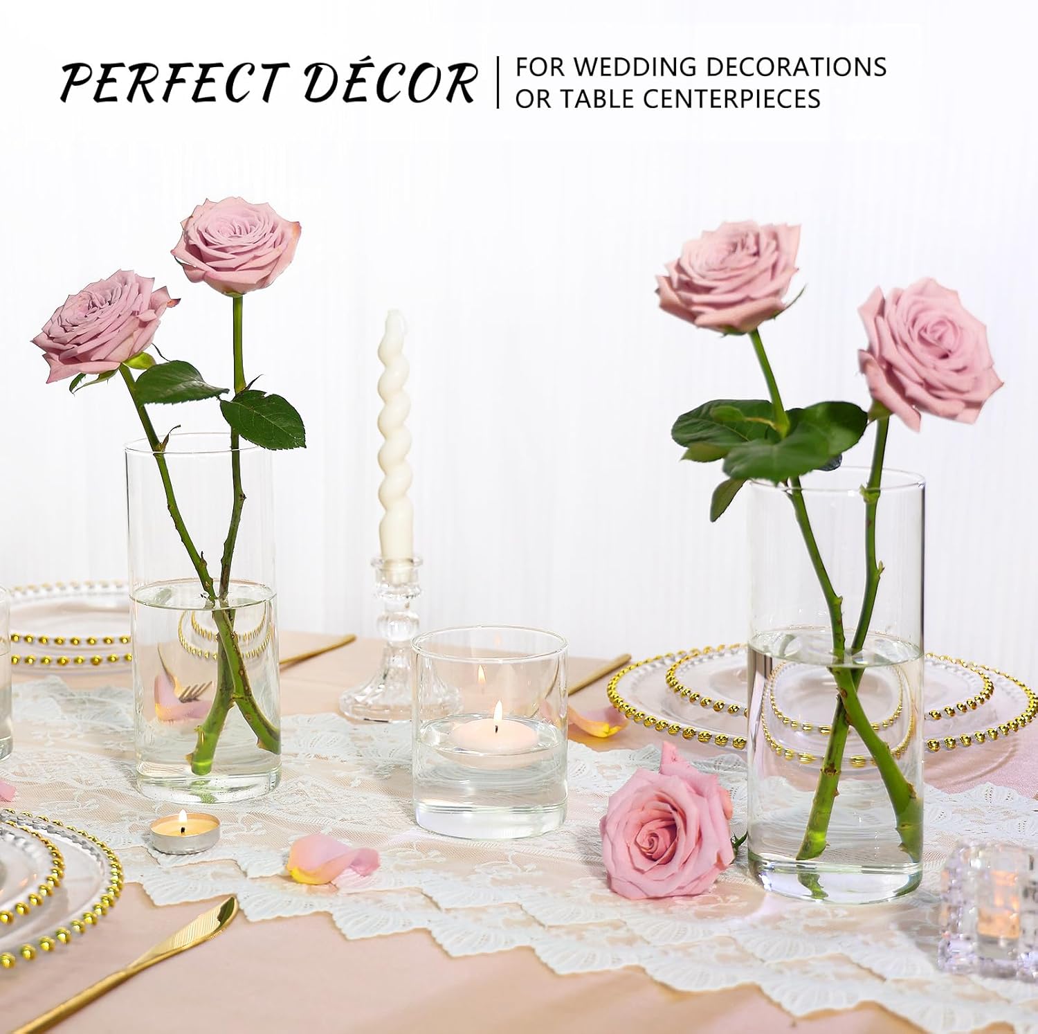 • Versatile Applications: This small cylinder vases bulk excel as exquisite table centerpieces, elegant glass candle holders, and enchanting wedding decorations. Their universal appeal makes them an ideal choice for a wide range of occasions, including restaurants, gardens, weddings and parties.